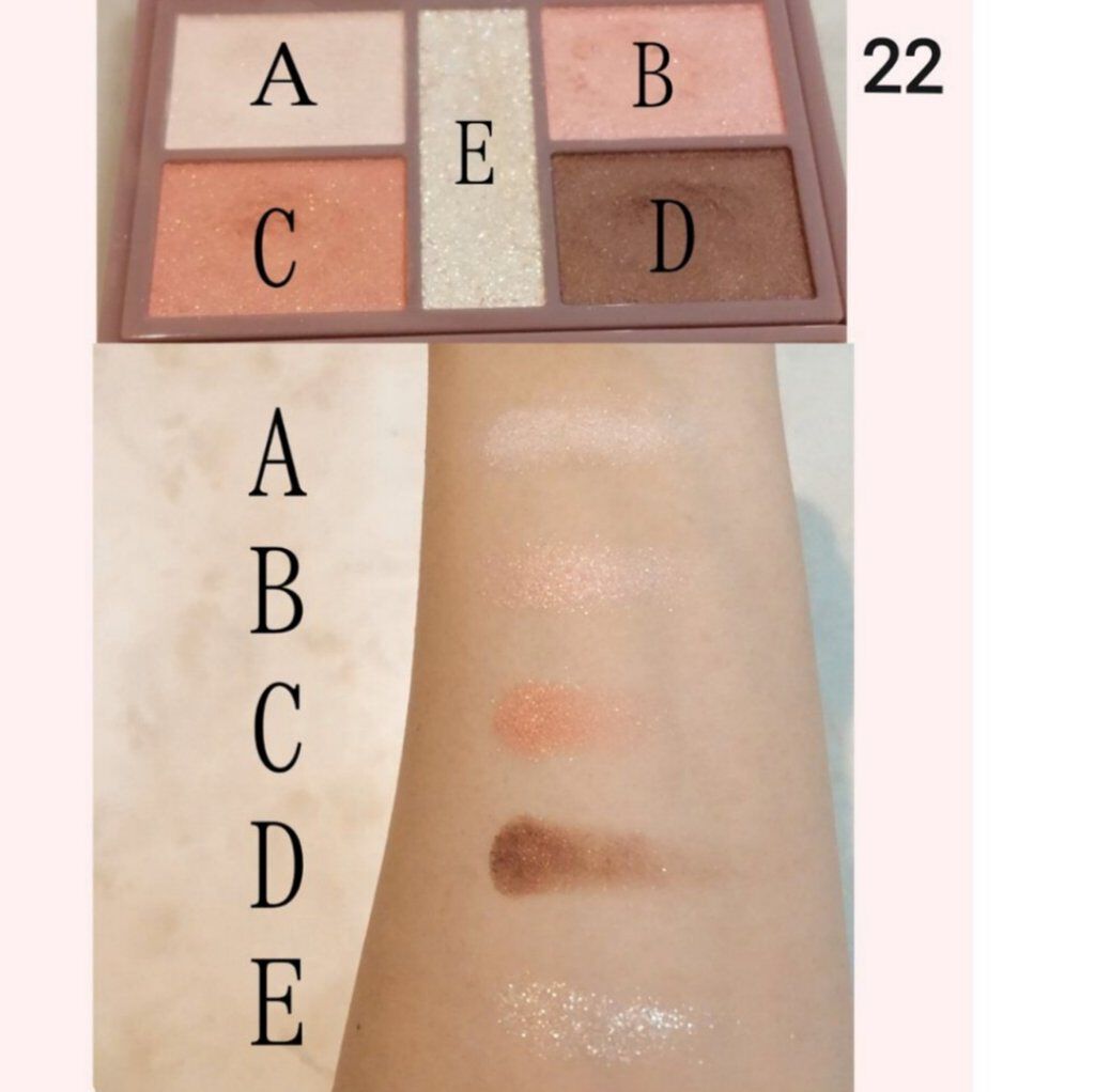 - 1枚のパレットで2つのスタイルが完成! 5色の欲ばりアイシャドウ♥ メインカラーを選んで2つのスタイルが楽しめる! A→B→D でスタイル1 A→C→D でスタイル2 繊細な粉質が、しっとりとまぶたに密着して色落ちを防ぎます。 透明感のあるキラうるトッピングジュエル(繊細ラメ)は、気分によってトッピング!