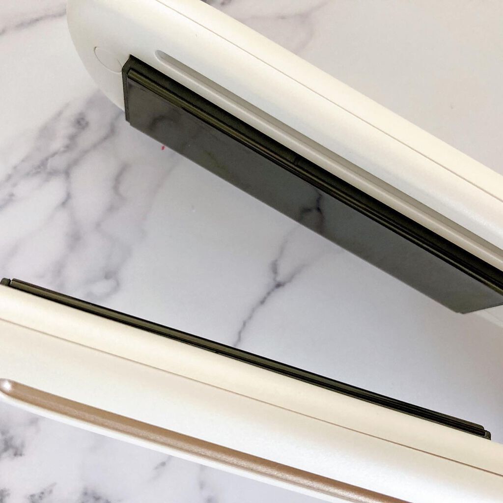 オシャレなデザインになってリニューアル🙌🏻✨ モバイルバッテリーと繋げば、いつでもどこでもスタイリングできちゃう💕 手のひらサイズのコンパクトさでかなり軽い!使用後に収納できるキャップ付きで持ち運びにも便利でかなり有り難い🥹 ピタッと挟めるクッションプレートで軽い力でもしっかり挟めるし、前髪・毛先・顔周りなどのポイントセットやショートの方なら全体にも使いやすいし、メンズのヘアセットにもおすすめ🙆♀️