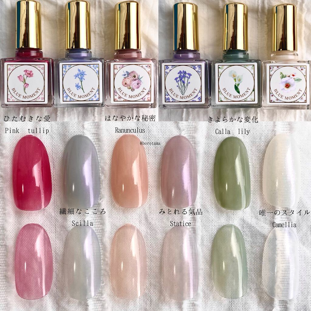 繊細なこころ - Scilla-シアーなライトブルーにピンクパープルの偏光パール入り✨儚げな印象がかわいい♡春夏冬と使いたくなるカラーです! きよらかな変化 - Calla lily -シアーなくすみグリーンにゴールドパール入り✨明るめのくすみグリーンなので、これからの季節にぴったり♡ 唯一のスタイル - Camellia-シアーなホワイトにピンクとパープルに光る偏光パールと、グリーンやイエローに光るラメ入り✨パールもラメも悪目立ちせず上品♡でもパールとラメのおかげでのっぺりしないので、ホワイトネイルが苦手という方にもおすすめ!