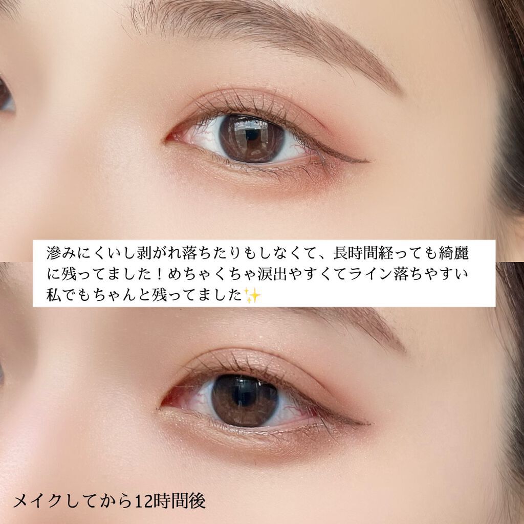 なめらかな書き心地で発色も良く、ブレずに描きやすい! パケに結構重さがあるので、安定してラインを引きやすいのが特徴です👌 めちゃくちゃ可愛かった〜!🥺 名前の通りミルクを加えたような、まろやかで優しい色味のブラウンです。 しっかり描いてもアイラインがっつり引いてます感が出ないので、ナチュラルに仕上げたい方にオススメです! 透け感があるので重たい印象にならなくて、ふんわり優しい雰囲気のアイメイクになります🕊𓈒𓏸◌ 発色が淡くて肌なじみが良いのではみ出してもわかりにくくて、適当にササッと引いても割と綺麗に仕上がる😂 ラブライナーは色素沈着しにくい顔料タイプなので、落とす時もストレスフリーでお気に入りです♪ 今回試しに眉毛もこのアイライナーで描いてみたんですが、発色淡めのなので意外と馴染んだ気がする…😂 個人的に結構お気に入りのアイライナー(兼アイブロウペンシル?笑)になりそう😳笑