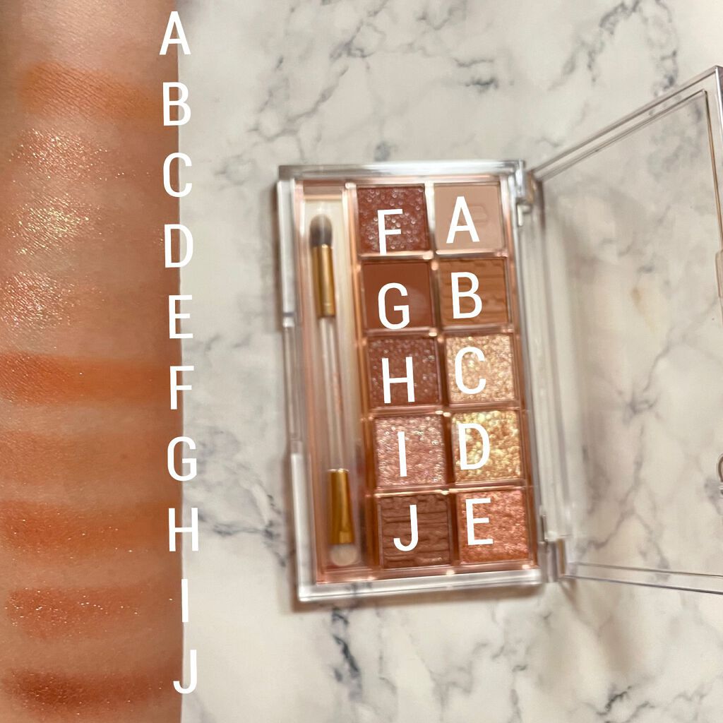使用してみた結果...めちゃくちゃ良かった←❤️ なんでもっと早よ買わんかったんや🤣🤣 マット、ラメ、大粒ラメ ラメカラーが多めのパレットで 発色が良い〜💕 粉質はしっとりめで どのカラーも ラメ飛びも無く高密着でした☝️ 10色どれも好みの色味で 可愛くて捨て色なし🙅♀️ 色んな組み合わせでメイクが 楽しめるので買ってよかったです🎶 他のパレットも🎨欲しくなる〜🤤✨