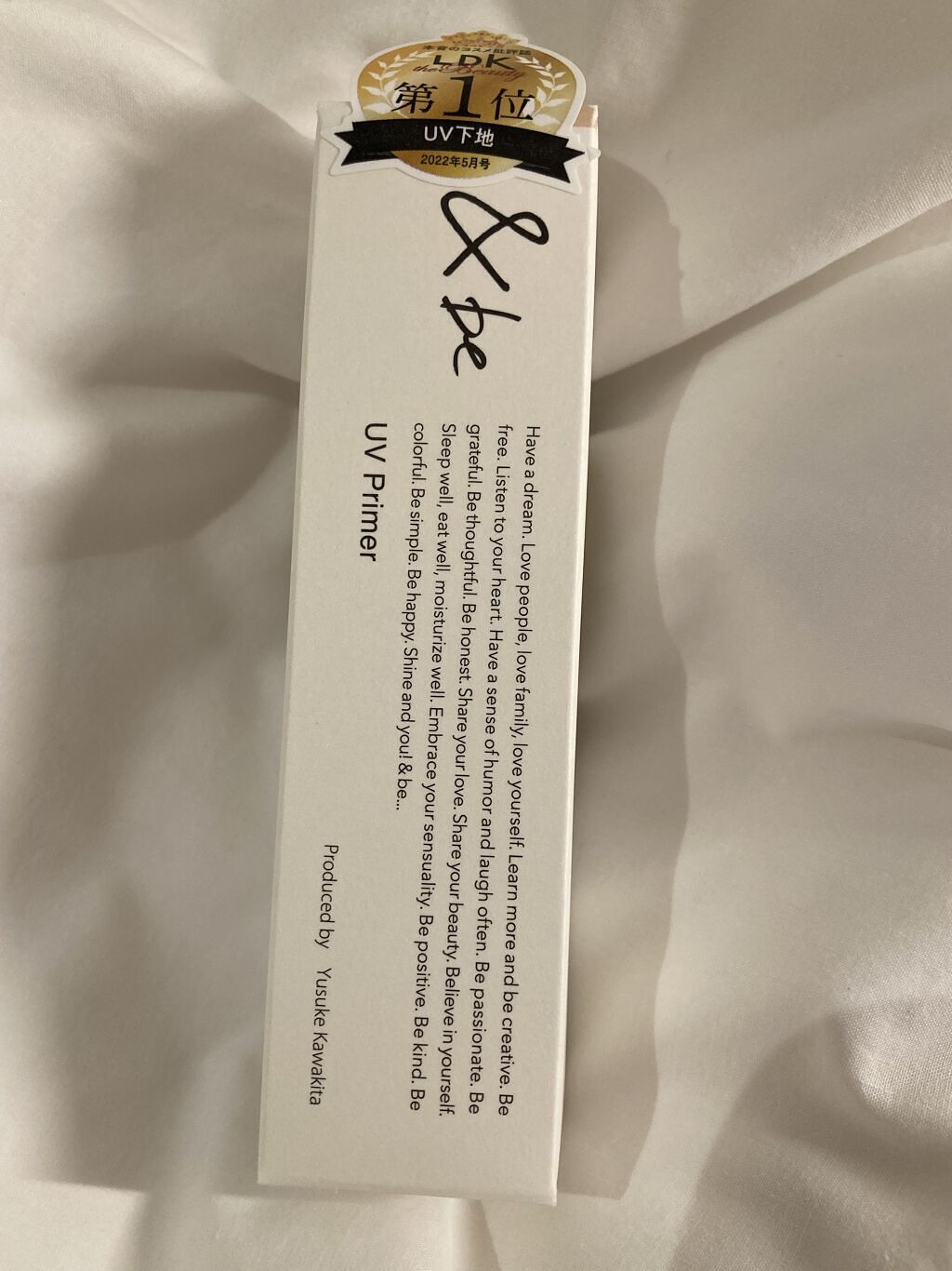 最近ノーファンデをはじめたお友達の肌がすごくキレイで。日焼け止めとか何使ってるのか聞いたらこれだよって教えてくれたので、さっそく私も使い始めました♡ &be(アンドビー)「UVプライマー」下地なんだけど、カバー力が高めでとにかくツヤがキレイ。肌にみずみずしい透明感を与える微細パールが高配合されてるんだそう。 SPF50+・PA++++と高い紫外線カット効果をノンケミカル処方で実現。鉱物油、紫外線吸収剤、石油系界面活性剤、タール系色素、合成香料不使用のフリー処方で、石鹸オフできるのも嬉しいポイント。