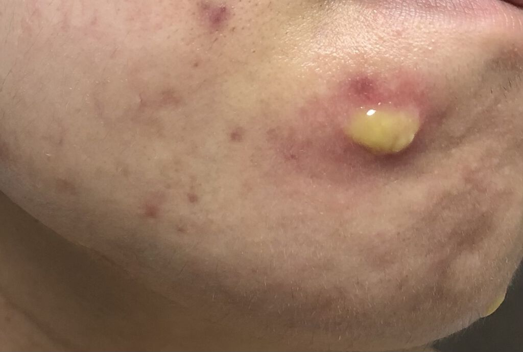 1.3枚目は6月16日2.4枚目は今日6月19日の写真ですニキビちゃっかり大きくなってて笑う先週の土曜くらいからかぶれ始めてて、かゆみぶつぶつだけでなくマスクで擦れて痛みまで酷くなってきたので昨日皮膚科行ってロコイド軟膏を貰ってきました。(遅...