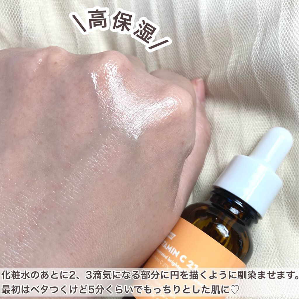 奥深くから溢れるツヤでまるでぐっすり寝たかのような若々しい肌! イギリス産の純粋なビタミンC21%が入っています。 ツヤ感や毛穴の目立ち軽減に期待できる仕上がりでとっても🙆🏻♀️ ̖́-