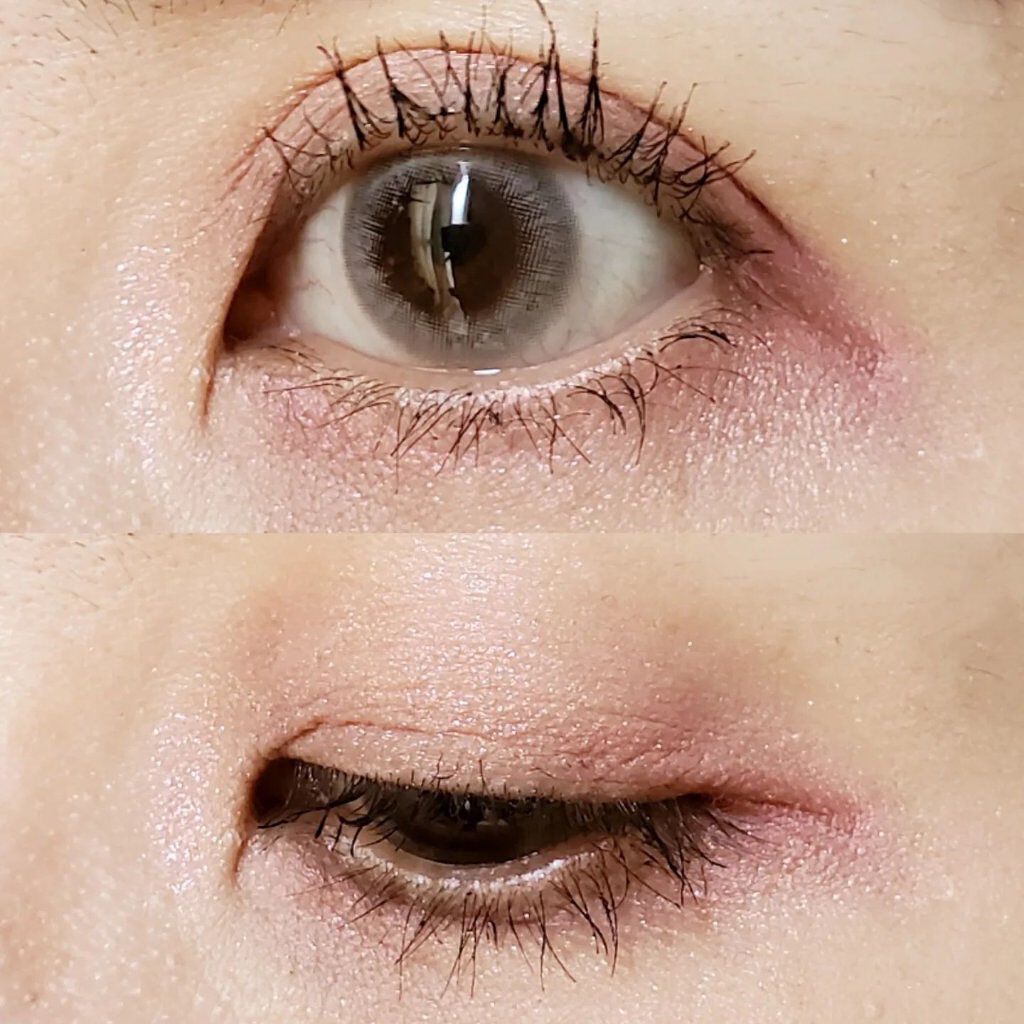 なんとなくだけど左側がブルベ寄り、右側がイエベ寄りの色味でニュートラルなパレットかなと思いました。 目元写真みると発色薄く見えるかなとおもいますが朝メイクして、直さず夜に撮ったのでこんな感じです。 カラコンはmimucoのブラウンフォンデュミムコのカラコンはどれも自然でかわいいです。