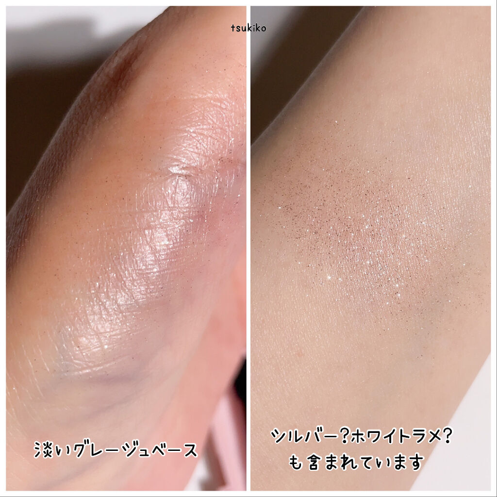 - <パールベージュ> ジメチコン、タルク、ホウケイ酸(Ca/Al)、イソステアリン酸水添ヒマシ油、シリカ、マイカ、合成フルオロフロゴパイト、酸化チタン、ヒアルロン酸Na、セラミドNP、シルク、スクワラン、マカデミア種子油、テトラヘキシルデカン酸アスコルビル、グリチルリチン酸2K、トコフェロール、メチルパラベン、酸化鉄、酸化スズ <キアラベージュ> ジメチコン、合成フルオロフロゴパイト、タルク、イソステアリン酸水添ヒマシ油、ホウケイ酸(Ca/Al)、マイカ、酸化チタン、酸化鉄、ヒアルロン酸Na、セラミドNP、シルク、スクワラン、マカデミア種子油、テトラヘキシルデカン酸アスコルビル、グリチルリチン酸2K、トコフェロール、シリカ、銀、メチルパラベン、酸化スズ、水酸化Al <アルナイルパール > ジメチコン、タルク、イソステアリン酸水添ヒマシ油、マイカ、シリカ、合成フルオロフロゴパイト、ホウケイ酸(Ca/Al)、酸化チタン、ヒアルロン酸Na、セラミドNP、シルク、スクワラン、マカデミア種子油、テトラヘキシルデカン酸アスコルビル、グリチルリチン酸2K、トコフェロール、酸化鉄、酸化スズ、メチルパラベン、赤226 <キャラメルパール> ジメチコン、タルク、イソステアリン酸水添ヒマシ油、ホウケイ酸(Ca/Al)、シリカ、合成フルオロフロゴパイト、マイカ、酸化鉄、酸化チタン、ヒアルロン酸Na、セラミドNP、シルク、スクワラン、マカデミア種子油、テトラヘキシルデカン酸アスコルビル、グリチルリチン酸2K、トコフェロール、メチルパラベン、酸化スズ <メリンダベージュ> ジメチコン、合成フルオロフロゴパイト、タルク、イソステアリン酸水添ヒマシ油、ホウケイ酸(Ca/Al)、マイカ、銀、酸化鉄、ヒアルロン酸Na、セラミドNP、シルク、スクワラン、マカデミア種子油、テトラヘキシルデカン酸アスコルビル、グリチルリチン酸2K、トコフェロール、酸化チタン、メチルパラベン、酸化スズ