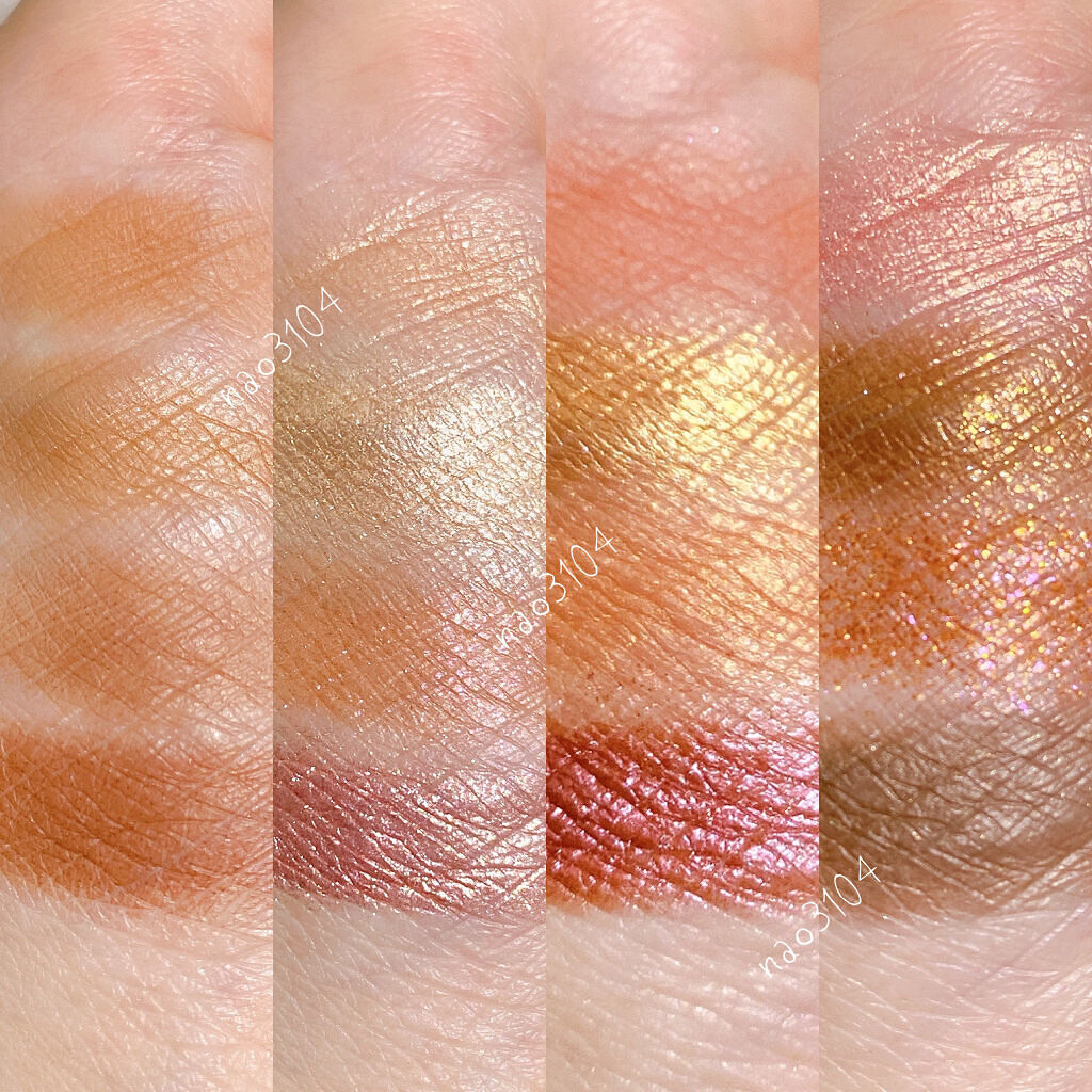 *NARSナーズ*#ハードワイヤードアイシャドー購入したカラーを全色スウォッチ❗️✔︎5334MELROSEピンクベースにゴールドラメ。肌馴染み最高です。✔︎5338PATTAYAブラウンベースに、ゴールドラメが所狭しと!✔︎5339MEND...