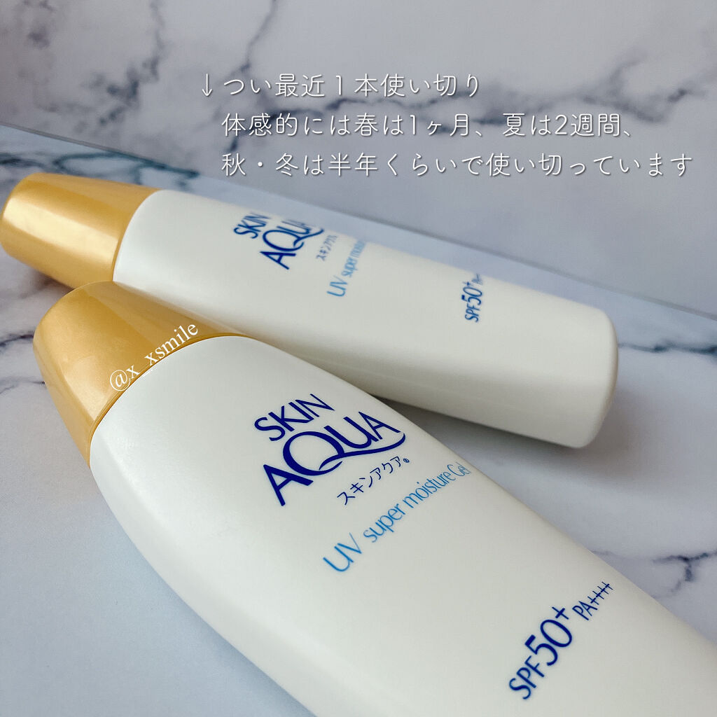 「スキンアクアスーパーモイスチャージェル」✔️3種のヒアルロン酸(うるおい成分)配合 ✔️スーパーウォータープルーフ✔️顔・からだ用、化粧下地にも✔️無香料、無着色、パラベンフリー、鉱物油フリー✔️SPF50+/PA++++/UV耐水性★★...