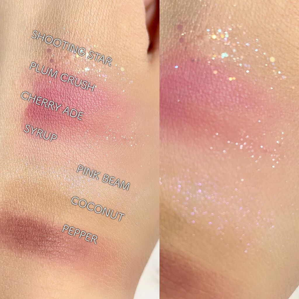 \かわいすぎて事件🤯💘⚡️濡れツヤハイライト/ 上品でキラキラのツヤが美しすぎると発売前から話題でしたね🙌 エナメル+キルティング加工のケースはツルツルぷにぷに♬ 薄型なので持ち運びにも便利!かわいいので無駄に持ち歩こう🙋♀️(?) 細かなピンクパールが温かみのあるツヤを演出してくれます💗 とてもしっとりしたパウダーで粉感がなく、繊細な輝きが長続きします👏 大粒の偏光ラメがギラギラ🤩🥳祭りじゃ〜!といった感じ笑 ホワイトカラーで輝きが目立つので濡れたようなツヤ感が出ます✨ マスクメイクでも頬骨より少し上のCゾーンに入れれば隠れずツヤ感が綺麗に映えます🥰 ラメが大粒で強いのでアイメイクの仕上げに入れても💮 結果万能なのとちょっと奇抜なの♥️ 両方文句なしにかわいかったので満足です🧚♀️笑