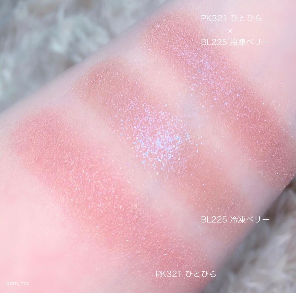 ひと塗りでまばゆく発色 思いのままにカスタムできるフォルム整形アイシャドウ。 PK321 ひとひらはブルーパールが輝く赤みピンク🩷 単色で仕上げるのはもちろん、コルクとの組み合わせがお気に入り☺︎ プチプラの単色シャドウでマジョマジョが最強やと思う✨️