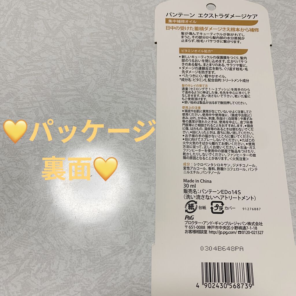 商品詳細情報パンテーン エクストラダメージケア 集中補修オイル