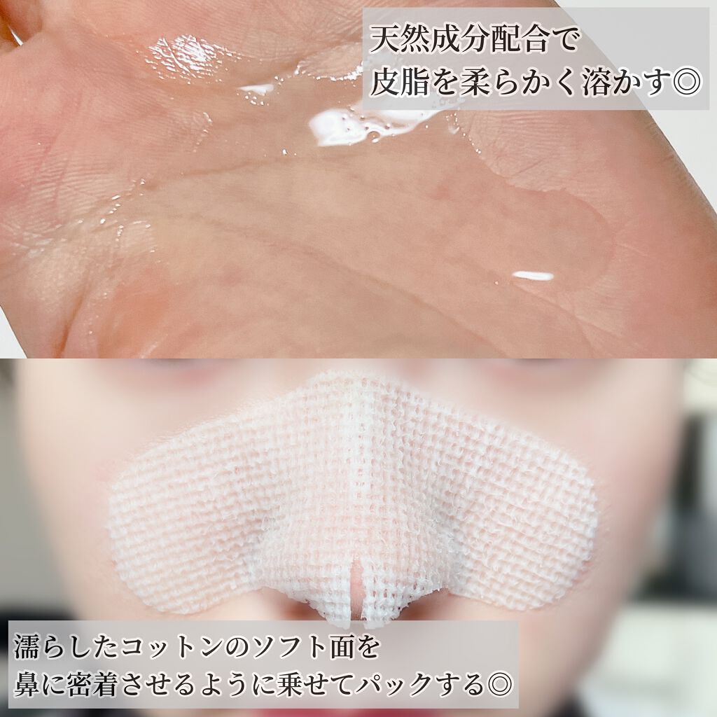 - 皮脂を無理矢理抜き取らず、やさしく溶かして低刺激ケア 黒ずんだ毛穴はもうさよなら! コットンパックで気軽に角質ケアのできるノーズピーリング。 コットンにしっかり含ませ、Tゾーンや皮脂の気になる部分に置き、15~20分程度コットンパック。 その後コットンをはがしたら、ぬるま湯でキレイに洗い流します。 自然由来エキス配合でケア後もしっとり。週に1回のスペシャルケアにおすすめです。