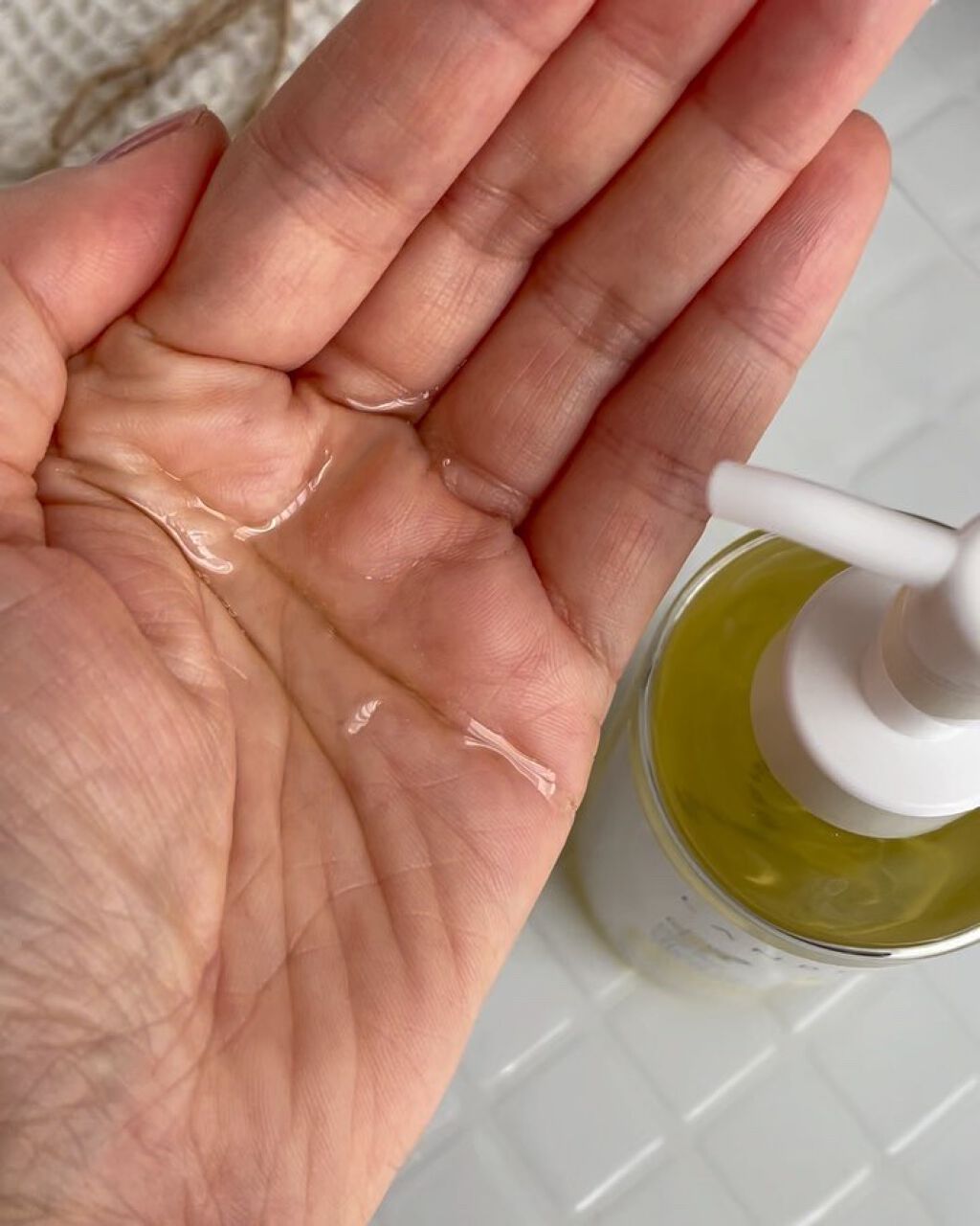 贅沢に美容成分を配合しているクリームは思ったより軽く、みずみずしく、素肌によくのびます。べとつきはしないかな。 プッシュしてエアレスボトルから新鮮なクリームが出てくるから量も調節しやすい🙆♀️ クリームはジェルのようにみずみずしいよ。少し高級化粧品によくあるような独特の香りがします。 ピンク色のエアーレスのボトル プッシュするとクリームが出てきます。