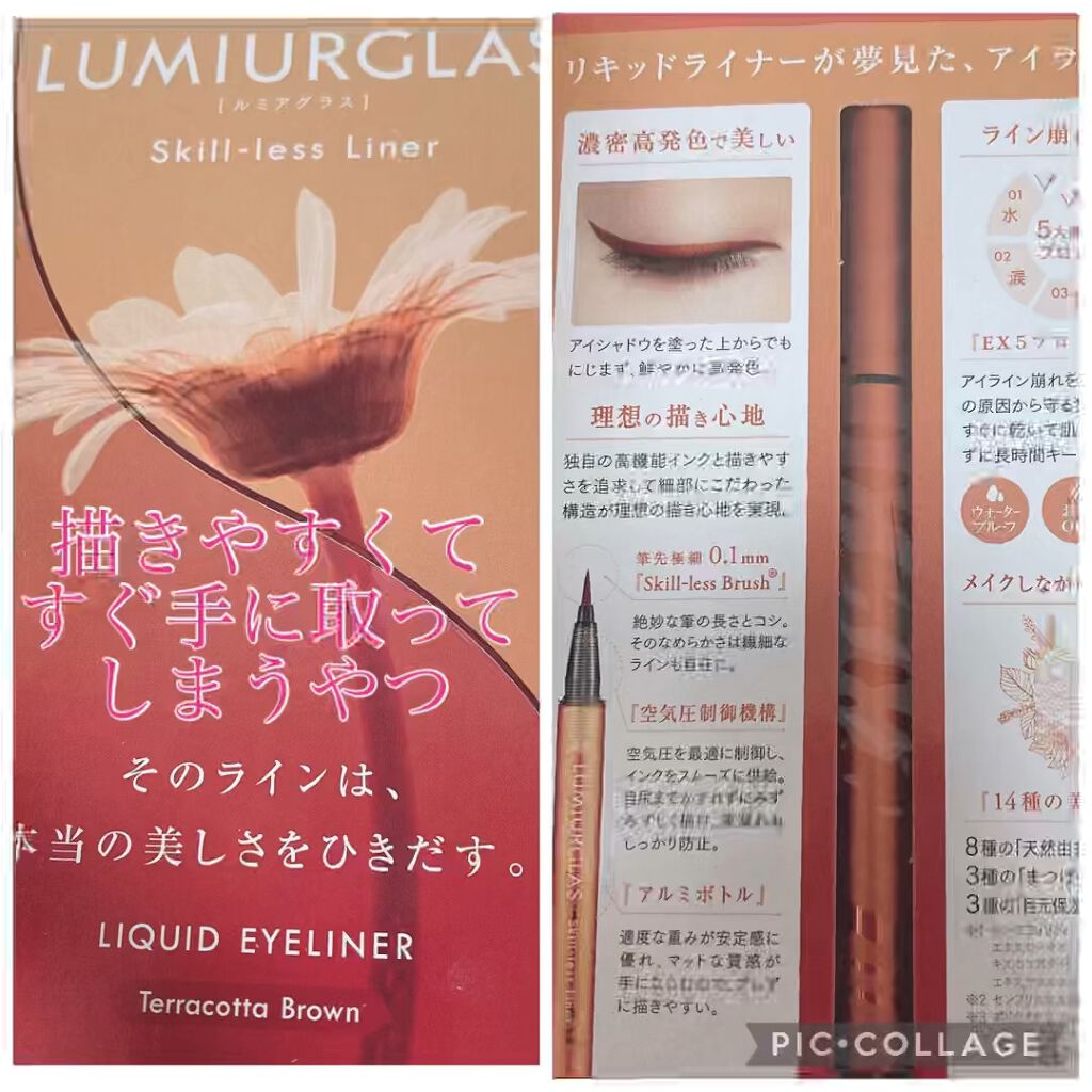 LUMIURGLASスキルレスライナー04.テラコッタブラウン ¥1,650肌の色になじみみやすい赤みの強いブラウン。オレンジや赤みブラウンのアイシャドウと一緒に使うと可愛い♡スルスル目尻まで描きやすいです。14種類の美容液成分配合で、メイク...