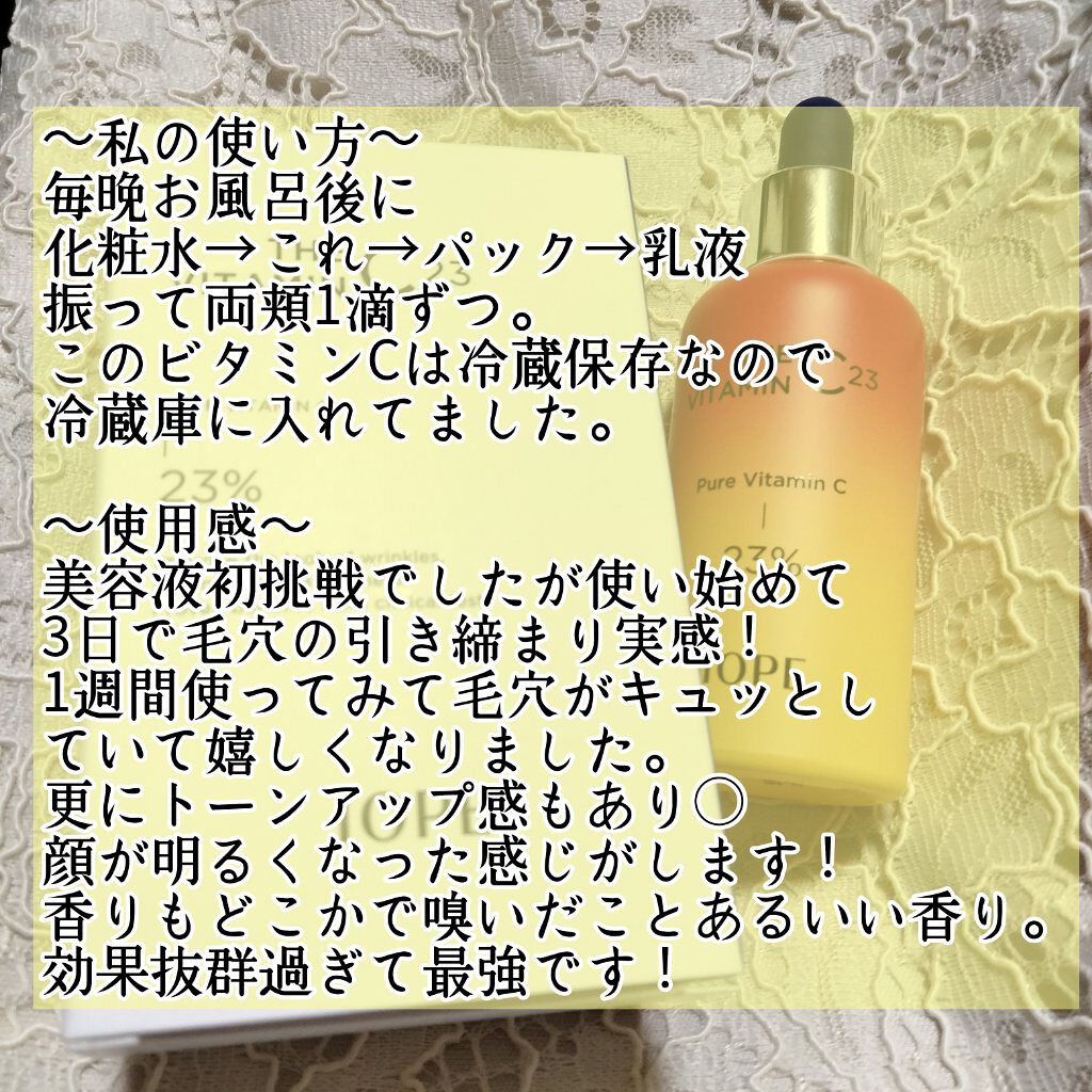 IOPE アイオペザビタミンC231週間で効果が実感できる美容液!肌のツヤ、肌の弾力、キメ改善3つの肌悩み改善に働きかけます。・注意ボトルを開封して使い始めたら、2か月以内に使い切ることが推奨となっています。保存方法は冷蔵保存となっています。...