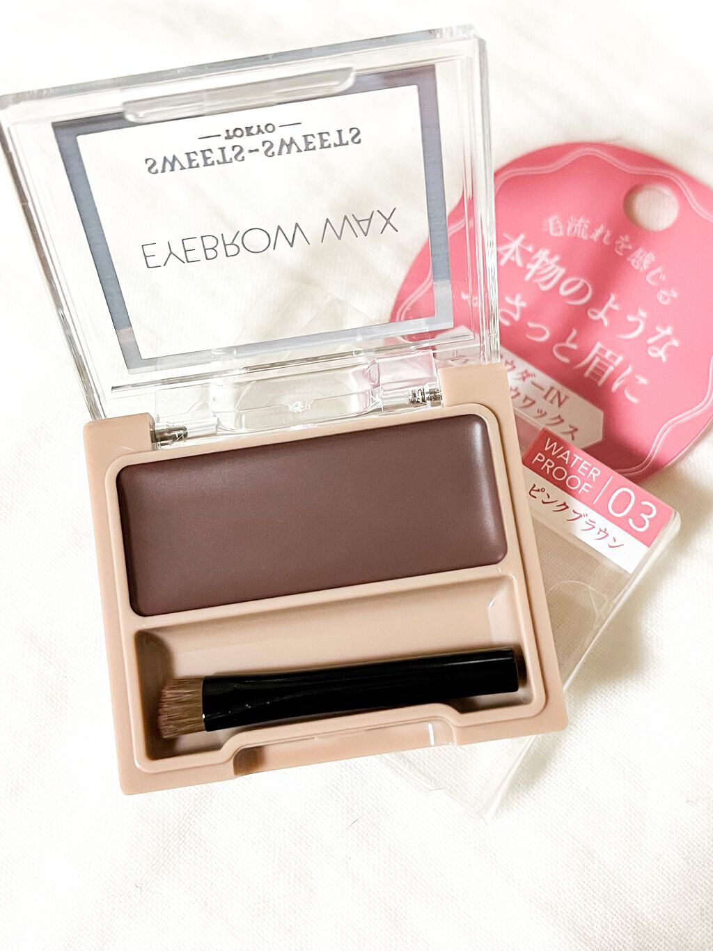 スウィーツスウィーツアイブロウワックス03ピンクブラウン一時期流行ったワックスタイプのアイブロウ🤔セザンヌ、キャンメイク、スウィーツスウィーツと色々調べてこちらを購入しましたᙏ̤̫͚ฅ普段はパウダータイプのアイブローかフォーク型のリキッドアイ...