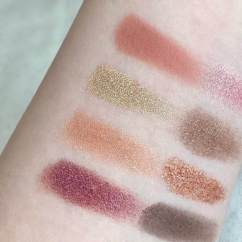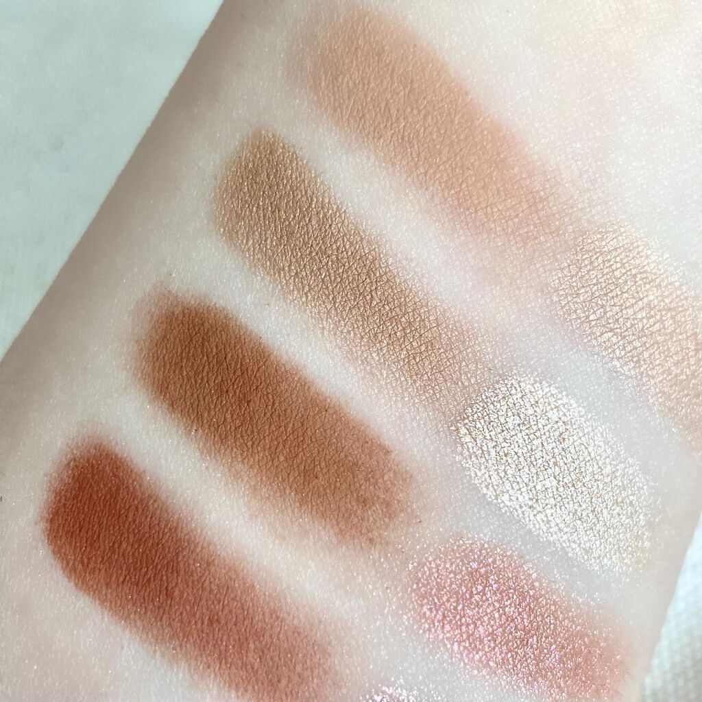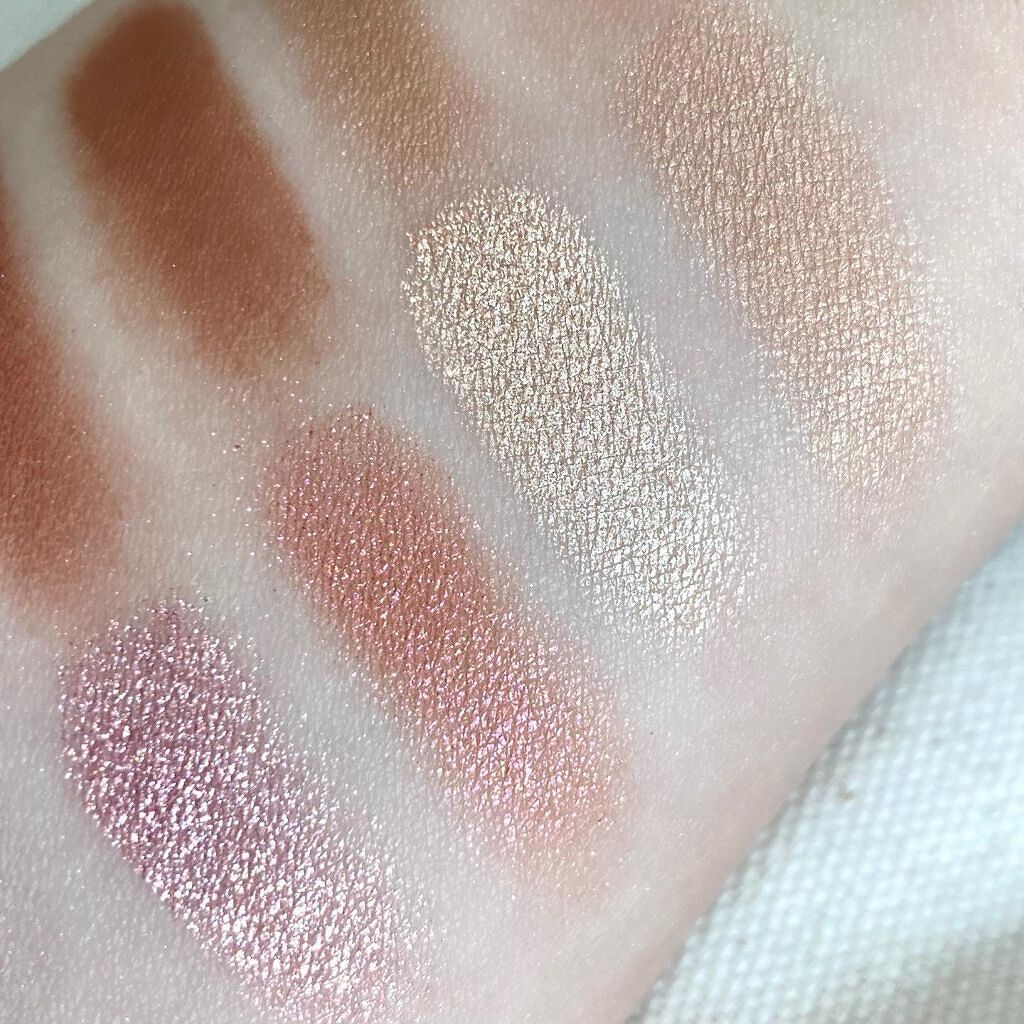 プライマーを使って、密度の高い感じのブラシで 左下ローズを置くように塗る。 ぼかすのは境目だけにして、しっかり色を出す。 右下のダークブラウンと思っていた濃い色は メイクしてみたら結構紫っぽく出たんですが これがまぁくすみ感が強くて…w くすみは何より苦手だよ😂😂 右上のラメはぺかっと光るのがとっても良い!!🤩 割とシンプルなメイクになるな~と思うけど しっかり色出せたので無事使っていけそうです💃🏼💓
