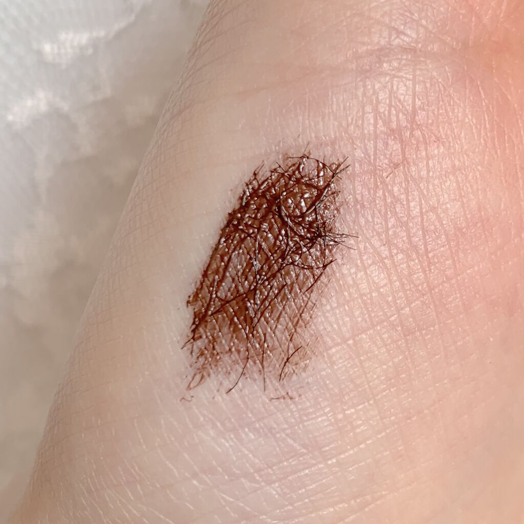 💫ふんわり仕上がるのに高発色 ☑︎汗・皮脂・こすれに強いのにお湯で簡単にオフ ☑︎地肌につきにくく、毛をとかしながらふんわり塗れるブラシを採用 自然なブラウン〜レッド系の髪色に合うローズブラウン 自眉毛の存在感は残しつつも、柔らかい赤みブラウンの眉毛にしてくれるので顔全体がふんわりとした印象になりました🤍 黒髪ですが全く浮くことなく、本当〜にナチュラル! 塗ってすぐにパウダー化するので、ベタっとなったりパリパリになったりすることがありません! ローズブラウンの方が赤みがあり、パールがチラチラと光っています💡