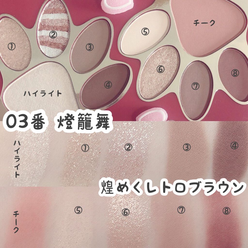 2022年の干支の寅年に作られたアイシャドウで、色味は03 燈籠舞という赤みがあるブラウンカラー。 イエベが使いやすい赤みがあるブラウンカラーで左側と右側使い分けることもできる アイシャドウだけでなくハイライト、チークとして使うこともできるから便利!