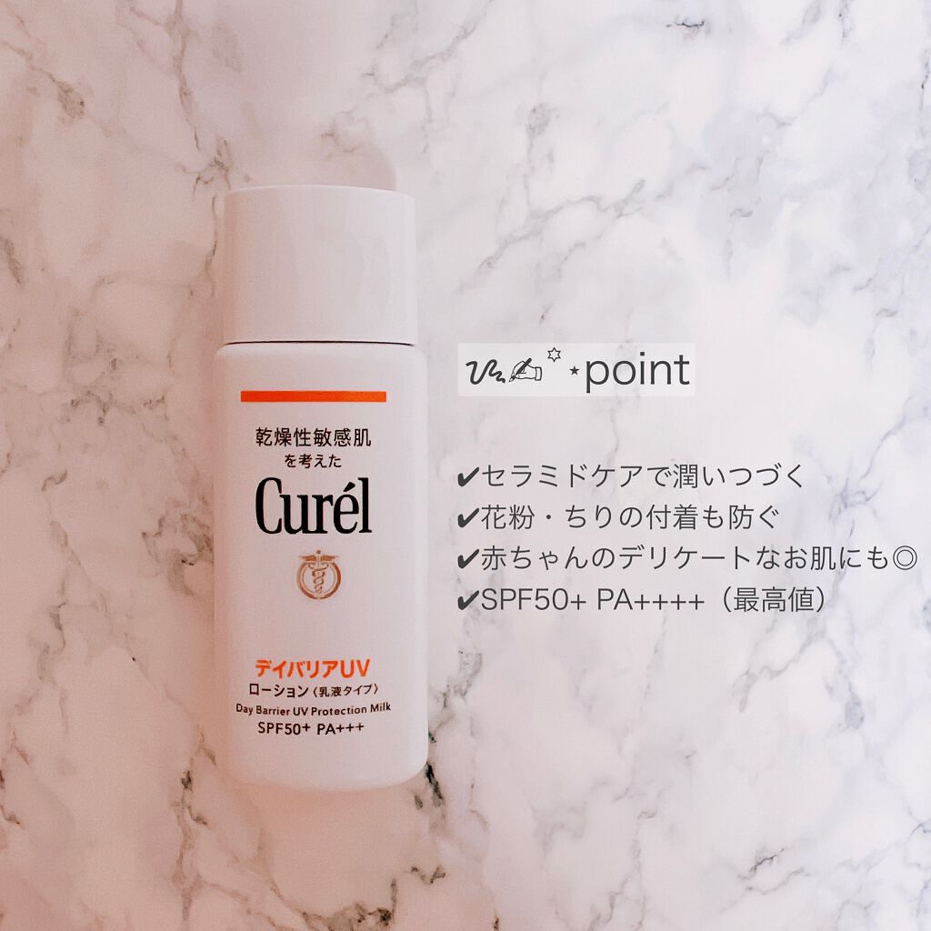 - 【敏感肌用】 紫外線・乾燥から肌を守り、消炎剤配合で肌荒れを防ぐUV。 ●デイバリアテクノロジー採用。肌を保護して、ちり・花粉などの汚れの付着を防ぐ。 ●負担感のないやさしい使い心地のすっとなじむローションタイプ。 ●潤い成分(セラミド機能成分※、ユーカリエキス、アスナロエキス)配合。夕方まで潤い続く。 ※ヘキサデシロキシPGヒドロキシエチルヘキサデカナミド ●赤ちゃんのデリケートな肌にも。 (医薬部外品) 商品に関するお問い合わせ 受付時間9:00~17:00(土曜・日曜・祝日除く) *製品の誤飲・誤食など緊急の場合は、受付時間外でもお電話ください キュレル:0120-165-698