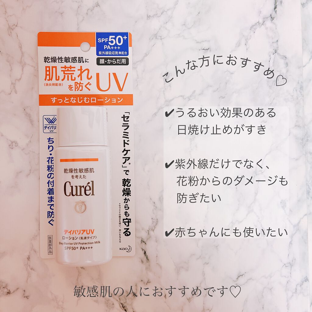 ☀️キュレルUVカットデイバリアUVローションLIPSさんを通じてキュレルさんから頂きました🌼🌿肌荒れを防ぐ(消炎剤配合)ノンケミカルUV(紫外線吸収剤無配合)🌿透明感のある明るい仕上がりに🌿セラミドケアで夕方まで潤い続く乾燥肌の私でも心配な...