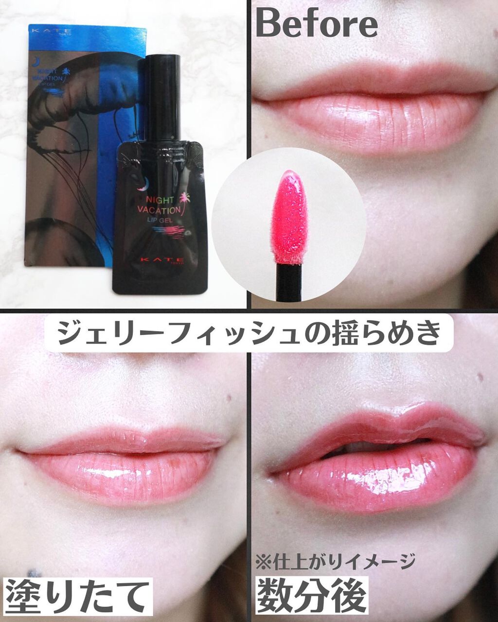 .夏にたくさん使いたい【ケイト ナイトバカンスリップジェル】✨ベタつきにくい〝ジェルリップ〟でぷっくりした唇に仕上がるんです〜👄💓唇に載せて時間が経つと発色が変化するのも楽しめます♪私がお試ししたのはEX-02とEX-04🙌🏻▶︎EX-02〈...