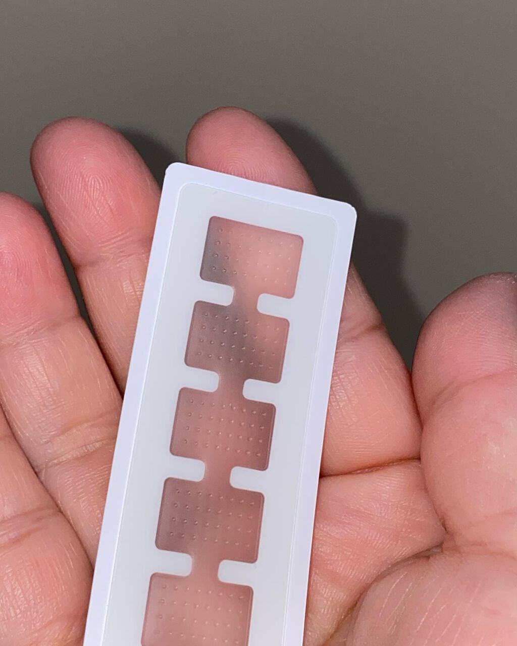 - 「刺す化粧品シリーズ」のおでこの年齢サインにアプローチをするおでこ専用商品です。 刺す化粧品の一番の特徴は、針の形状。美容成分そのものを針状に固め、肌に直接突き刺すことで、ダイレクトに角質層まで美容成分を届けることができる美容法です。 針の成分には、表情を大きく動かすことで刻まれていく折れグセのある肌を柔らかくする「ほぐし成分*」を配合。 さらに、美容成分でできた針を5つのブロックに分けて配置したシートで、おでこの形状や広さに対応。より幅広いアプローチを可能にしました。 週に2回貼って寝て、硬く深いおでこの年齢サインをケアします。 *キバナオランダセンニチエキス、ジ酢酸ジペプチドジアミノブチロイルベンジルアミド(肌を柔らげる成分)