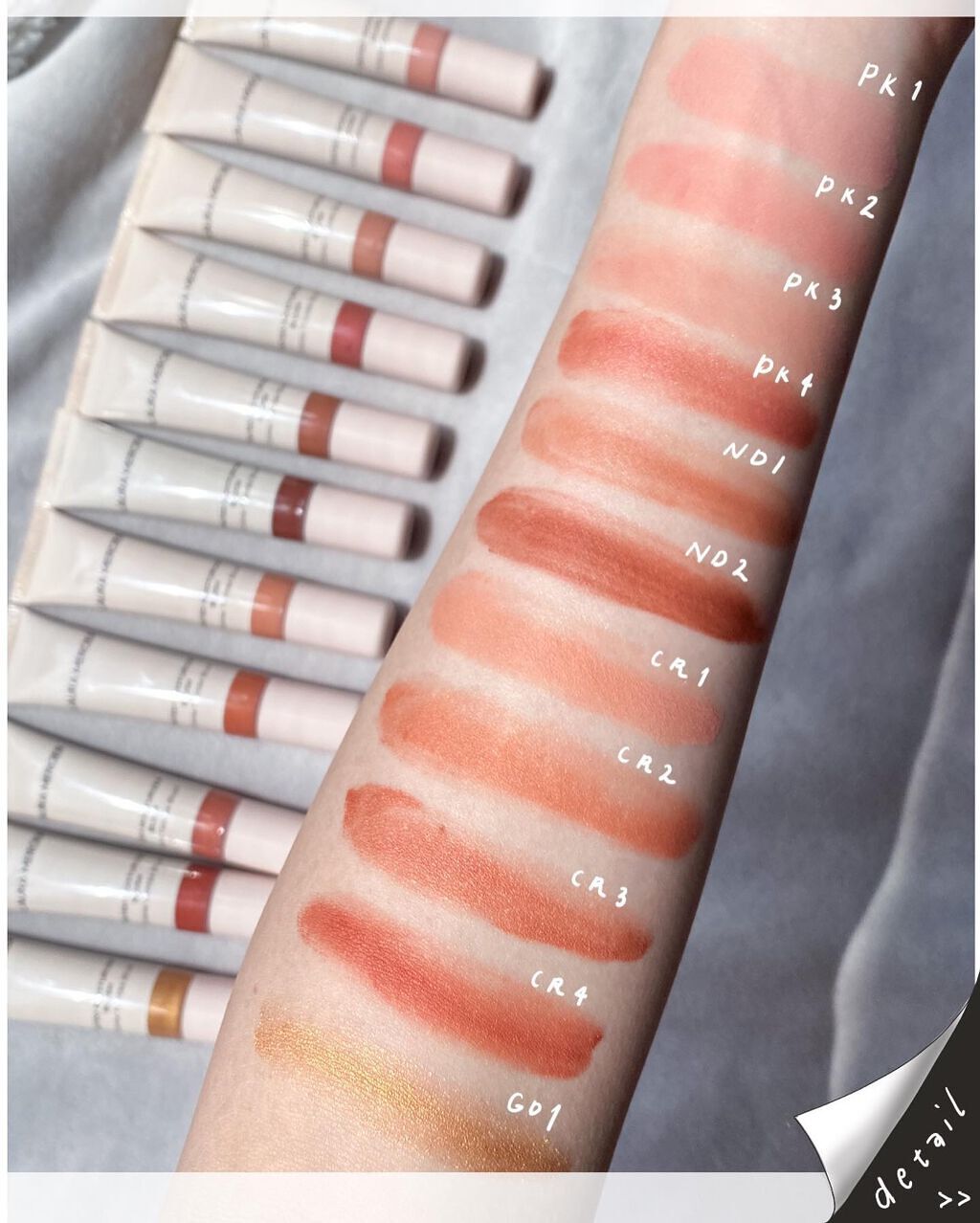 - <CR1 MEDITERRANEE> 水、オリーブ油エチルヘキシル、BG、グリセリン、ヨーロッパキイチゴ種子油、シリカ、ステアリン酸グリセリル、ステアリン酸PEG-100、フェノキシエタノール、セテアリルアルコール、ポリソルベート60、(アクリレーツ/アクリル酸アルキル(C10-30))クロスポリマー、ヤシ油アルキルグルコシド、スクワラン、EDTA-2Na、水酸化K、エチルヘキシルグリセリン、アスコルビン酸テトラヘキシルデシル、キサンタンガム、アルミナ、オプンチアフィクスインジカ茎エキス、トコフェロール、タカサブロウエキス、合成フルオロフロゴパイト、メリアアザジラクタ葉エキス、リン酸2Na、メリアアザジラクタ花エキス、サンゴモエキス、コクシニアインディカ果実エキス、アロエベラ花エキス、ナス果実エキス、ワサビノキ種子油、酸化スズ、ウコン根エキス、メボウキ花/葉エキス、カミメボウキ葉エキス、酸化チタン、酸化鉄、マイカ、オキシ塩化ビスマス、カルミン <CR2 CORSICA(PEARL)> 水、オリーブ油エチルヘキシル、BG、グリセリン、ヨーロッパキイチゴ種子油、ステアリン酸グリセリル、ステアリン酸PEG-100、シリカ、フェノキシエタノール、セテアリルアルコール、ポリソルベート60、(アクリレーツ/アクリル酸アルキル(C10-30))クロスポリマー、合成フルオロフロゴパイト、ヤシ油アルキルグルコシド、スクワラン、EDTA-2Na、水酸化K、エチルヘキシルグリセリン、アスコルビン酸テトラヘキシルデシル、キサンタンガム、タカサブロウエキス、アルミナ、酸化スズ、メリアアザジラクタ葉エキス、オプンチアフィクスインジカ茎エキス、トコフェロール、ワサビノキ種子油、リン酸2Na、メリアアザジラクタ花エキス、サンゴモエキス、コクシニアインディカ果実エキス、アロエベラ花エキス、ナス果実エキス、ウコン根エキス、メボウキ花/葉エキス、カミメボウキ葉エキス、酸化チタン、酸化鉄、マイカ、オキシ塩化ビスマス、カルミン <CR3 MISTRAL(PEARL)> 水、オリーブ油エチルヘキシル、BG、グリセリン、合成フルオロフロゴパイト、ヨーロッパキイチゴ種子油、ステアリン酸グリセリル、ステアリン酸PEG-100、フェノキシエタノール、セテアリルアルコール、ポリソルベート60、シリカ、(アクリレーツ/アクリル酸アルキル(C10-30))クロスポリマー、ヤシ油アルキルグルコシド、スクワラン、EDTA-2Na、水酸化K、エチルヘキシルグリセリン、アスコルビン酸テトラヘキシルデシル、キサンタンガム、酸化スズ、オプンチアフィクスインジカ茎エキス、トコフェロール、タカサブロウエキス、メリアアザジラクタ葉エキス、リン酸2Na、メリアアザジラクタ花エキス、サンゴモエキス、コクシニアインディカ果実エキス、アロエベラ花エキス、ナス果実エキス、アルミナ、ワサビノキ種子油、ウコン根エキス、メボウキ花/葉エキス、カミメボウキ葉エキス、マイカ、酸化鉄、酸化チタン、カルミン、オキシ塩化ビスマス <CR4 SUN DRENCHED(PEARL)> 水、オリーブ油エチルヘキシル、BG、グリセリン、シリカ、ヨーロッパキイチゴ種子油、合成フルオロフロゴパイト、ステアリン酸グリセリル、ステアリン酸PEG-100、フェノキシエタノール、セテアリルアルコール、ポリソルベート60、(アクリレーツ/アクリル酸アルキル(C10-30))クロスポリマー、ヤシ油アルキルグルコシド、スクワラン、EDTA-2Na、水酸化K、エチルヘキシルグリセリン、アスコルビン酸テトラヘキシルデシル、キサンタンガム、オプンチアフィクスインジカ茎エキス、トコフェロール、タカサブロウエキス、メリアアザジラクタ葉エキス、リン酸2Na、メリアアザジラクタ花エキス、サンゴモエキス、コクシニアインディカ果実エキス、アロエベラ花エキス、ナス果実エキス、アルミナ、ワサビノキ種子油、酸化スズ、ウコン根エキス、メボウキ花/葉エキス、カミメボウキ葉エキス、酸化鉄、酸化チタン、マイカ、オキシ塩化ビスマス、カルミン <GD1 SOLEIL(PEARL)> 水、オリーブ油エチルヘキシル、BG、グリセリン、ヨーロッパキイチゴ種子油、ステアリン酸グリセリル、ステアリン酸PEG-100、フェノキシエタノール、セテアリルアルコール、ポリソルベート60、(アクリレーツ/アクリル酸アルキル(C10-30))クロスポリマー、ヤシ油アルキルグルコシド、スクワラン、シリカ、EDTA-2Na、水酸化K、エチルヘキシルグリセリン、アスコルビン酸テトラヘキシルデシル、キサンタンガム、酸化スズ、オプンチアフィクスインジカ茎エキス、トコフェロール、タカサブロウエキス、合成フルオロフロゴパイト、メリアアザジラクタ葉エキス、リン酸2Na、メリアアザジラクタ花エキス、サンゴモエキス、コクシニアインディカ果実エキス、アロエベラ花エキス、ナス果実エキス、アルミナ、ワサビノキ種子油、ウコン根エキス、メボウキ花/葉エキス、カミメボウキ葉エキス、マイカ、酸化チタン、酸化鉄、オキシ塩化ビスマス、カルミン <ND1 COASTLINE> 水、オリーブ油エチルヘキシル、BG、グリセリン、ヨーロッパキイチゴ種