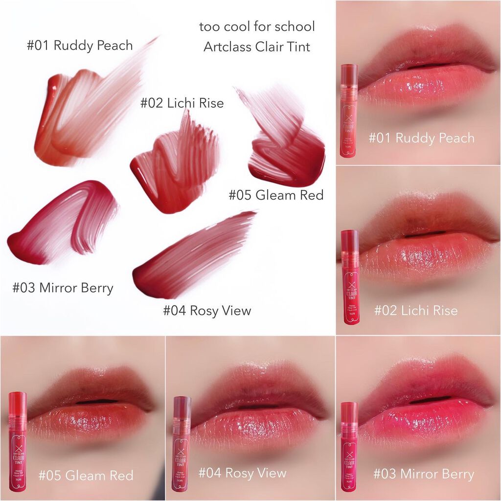 ガラス玉のような透明感ティント🫧 果実茶ティントリップ N01 白桃練乳茶 C02 夕焼け柚子茶 N06 ライチソーダ茶 B07 ピンク葡萄柚茶〈グレープフルーツ〉 元々N06番は一軍リップとして愛用中🫰🏻 ガラス玉のような透明感のあるティントで、どのカラーも可愛い🥺💓 ジュディドールは本間にハズレがなくてオススメ! マジで中国コスメの中で一番好きなブランド🫶🏻