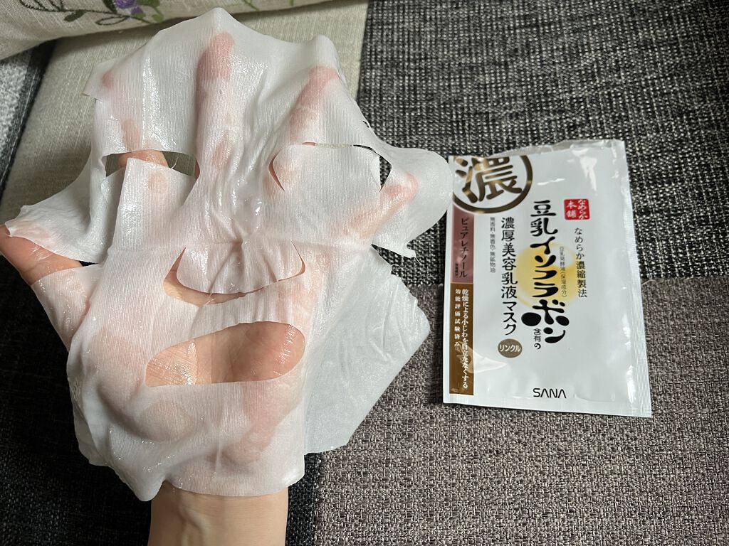 肌もっちりぷるぷる 《なめらか本舗》豆乳イソフラボンリンクルシートマスクN 20枚入り 大容量でとても使いやすかったパックです。ほどよい厚さのシートで5分~10分のお手軽マスク。 ピュアレチノール入りなので主に寝る前に使用していました。