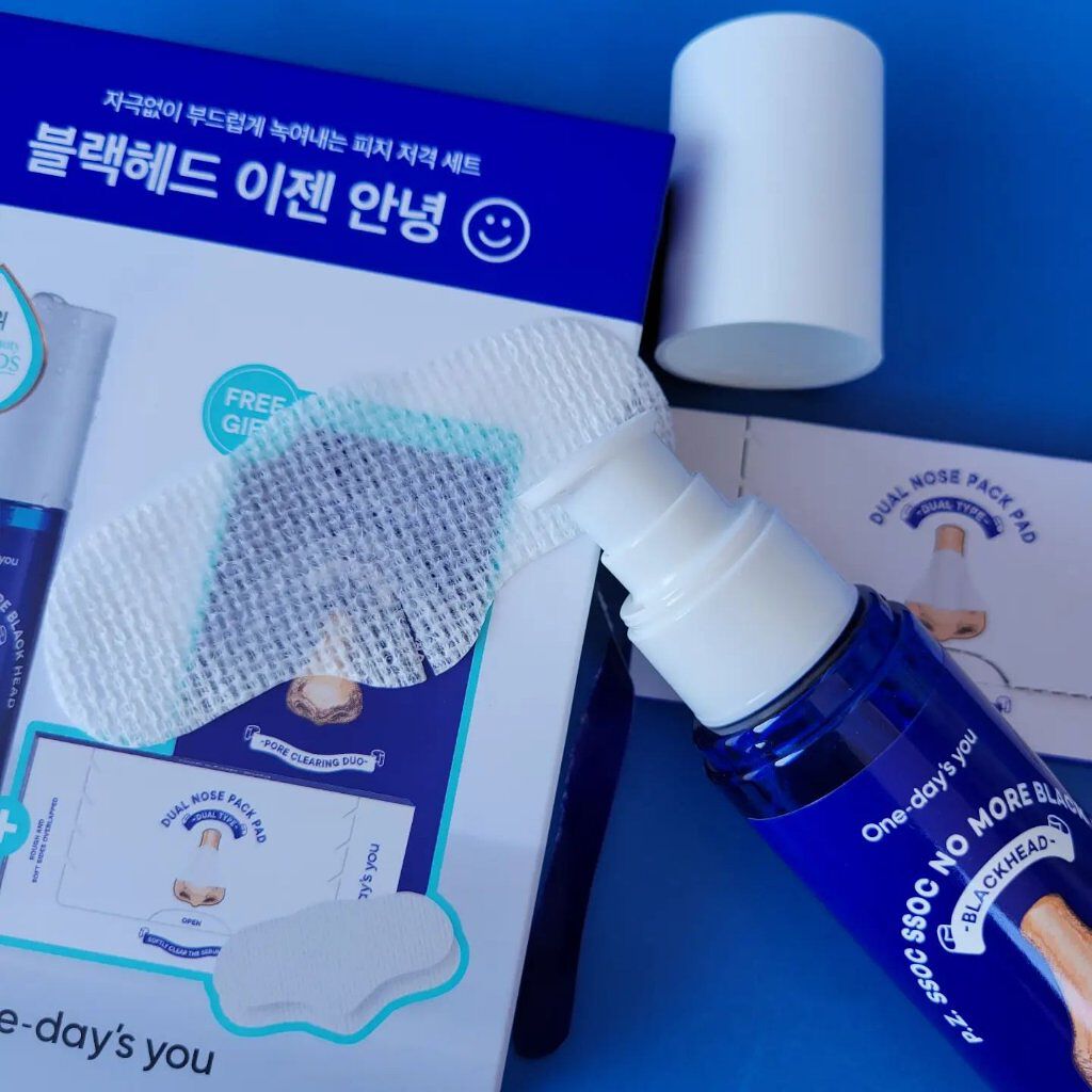 𓍯ノーモアブラックヘッド⌇One-day'syouブラックヘッドや皮脂をやさしくケアしてくれる大人気アイテム💙✨さらさらのウォーターテクスチャ。コットンにたっぷり染み込ませて15~20分パック⇨コットンを指に巻き、くるくる拭き取ります👆皮脂を...