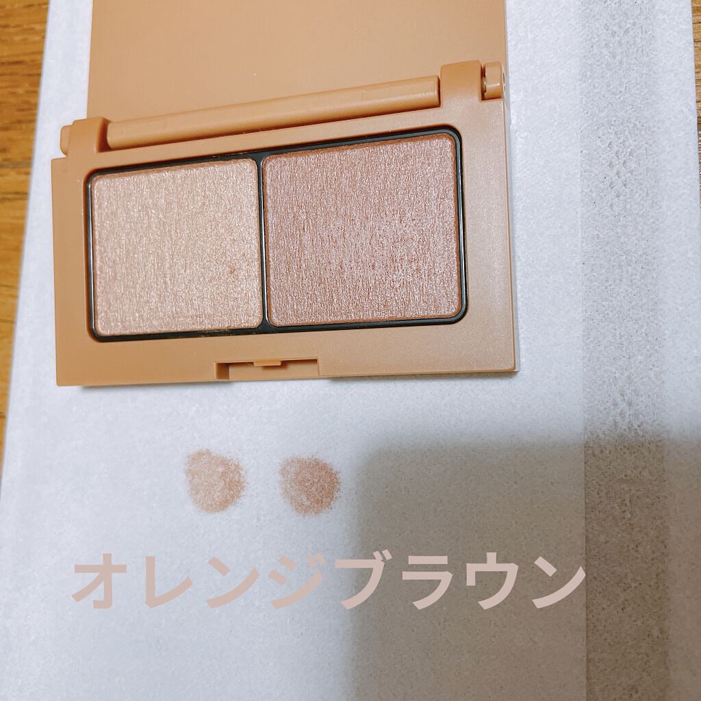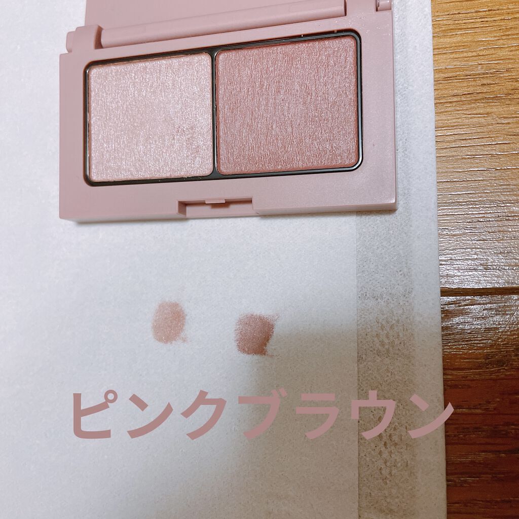 ブルベ夏向けとあるのですが、イエベでも使えそうなお色味…!全然ピンクピンクしてなくて、大人っぽい印象。 時間がないときはサッ、サッ、とこの2色を使ってグラデーションに仕上げています。 ラメ感はないかな。個人的にはラメがザクザクしてるアイシャドウは苦手なので、嬉しいお気に入りのアイシャドウです♪