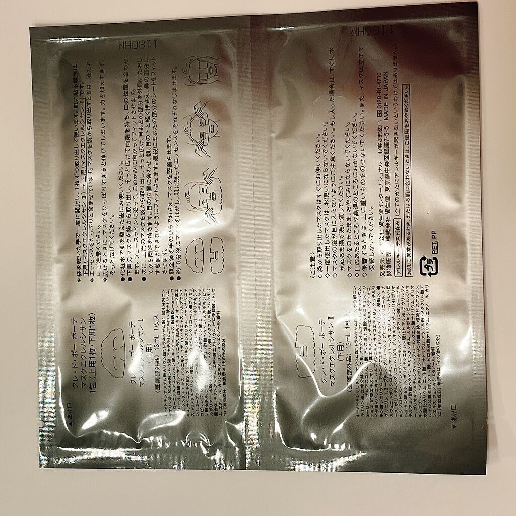 上下別れてるタイプのマスク!肉厚系のシートだったよ!!! 私は肉厚シート大好きだから嬉しい!そして1度の使用でお肌生き返ったの実感🥰🫶 マスク外したあとのお肌のモチモチ感と透明感爆増したの🫣🩵