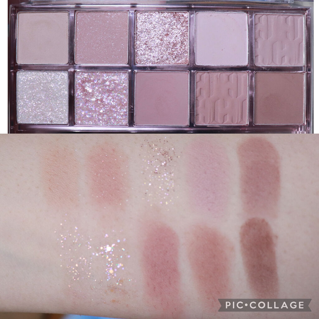 コーラルピンクやくすみ過ぎないレッドが入っているパレット! ラメがイエローラメですごく可愛い! コーラルピンクとレッドのアイシャドウはラメ入りとマットタイプがあって気分に合わせて色んなメイクが出来ます お気に入りポイントは右上のホワイトシルバーのようなカラーにパールがたくさん入っていて涙袋に塗るとぷっくり見えるところ! カラーは一見濃く見えますがテクスチャーが柔らかく、発色は控えめでふんわり発色です 春メイクやピンクメイクがお好きな方にオススメしたい話題のアイシャドウでした!