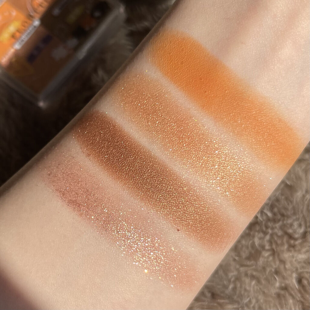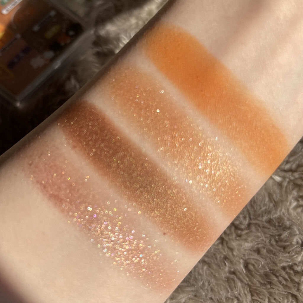 ADDICTIONの秋コレのパレットの中に入っているのに気づかず単色をお迎えしてしまいました😂笑 いざ単色で手に取ってみると可愛すぎて…! 太陽光での撮影なので少し暖かい感じに写っています。 1枚目でぎっしりの多色ラメ、伝わりますか?🥺 シンプルなメイクにたっぷり乗せてあげるのが可愛いです♡