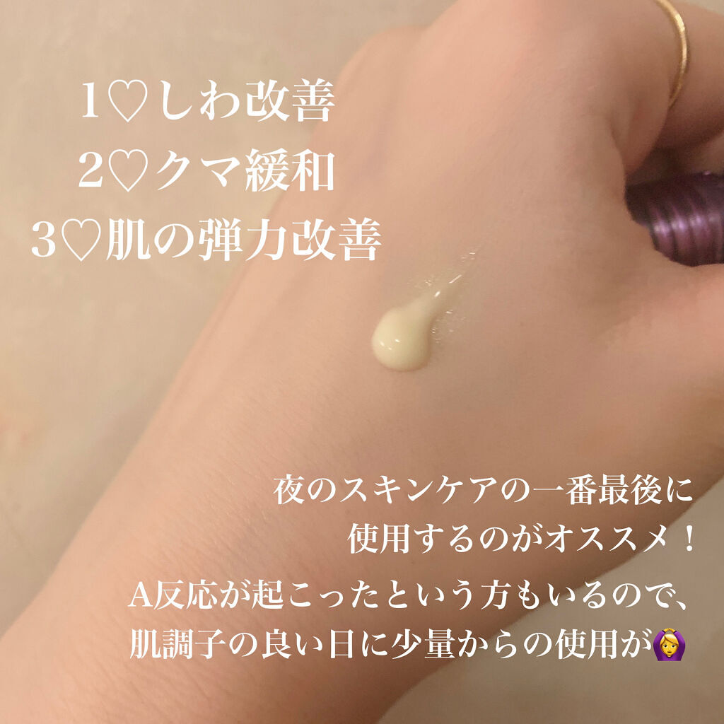 | 目元ケアランキング第14位 | 夜のスペシャルケアとして取り入れています! 肌なじみが良くて、サラリとしたつけ心地 | 詳細を見る | ||