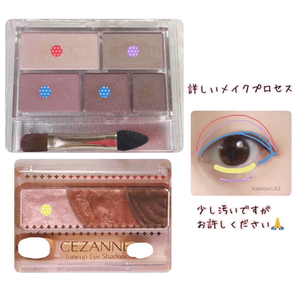 CANMAKE縛りコスメでキャラメルマキアートメイク! ①のアイベースを指先で塗り②をアイホール、下瞼全体にブラシでふんわり塗っていく。 しっかりまつ毛をカールさせてから上下マスカラを塗りマスカラコームで梳かし再度ビューラーでカールさせる。 今回は濃いブラウンアイシャドウでアイライナーの代わりにしましたがお手持ちのブラウンアイライナーを合わせても👌