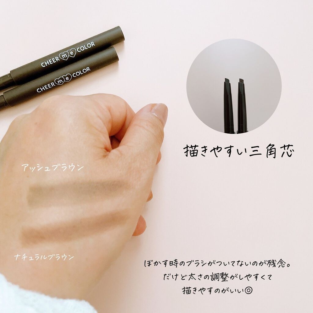 チアミーカラーの #リキッドアイライナー はここ最近おしゃれカラーばっかだし、相変わらず擦れに強すぎる!! フェルトタイプだけどまつ毛の際やはね上げラインも普通に描けるよ◎ 髪が暗めの方でも違和感なく抜け感のある眉が作れちゃうグレージュがほんとオススメ🫶🏻 各100円(税込110円)