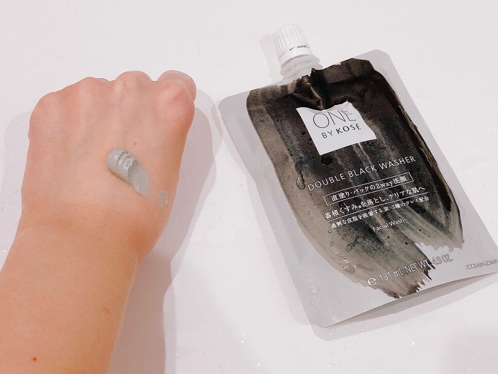 ONEBYKOSEダブルブラックウォッシャーパック洗顔もできる!直塗り洗顔!泥&クレイで過剰な皮脂をしっかり落として、くすみをクリアに🙌🏻使用量をcmでパッケージに記載してくれてて、取り出しやすい形だから適量がわかりやすい!みずみずしくて伸ば...