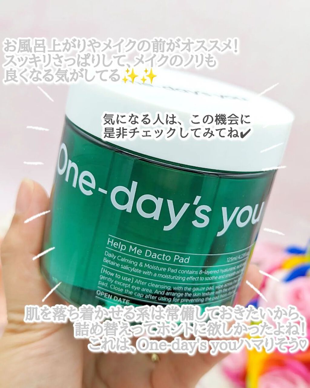 One-day'syouヘルプミー!ダクトパッド最近、肌荒れが気になっているのでOne-day'syouのヘルプミー!ダクトパッドを使い始めました✨やや厚めのパッドなので拭き取りしやすかったです🙆🏻♀️凸凹のエンボス面で拭き取ることで角質・...