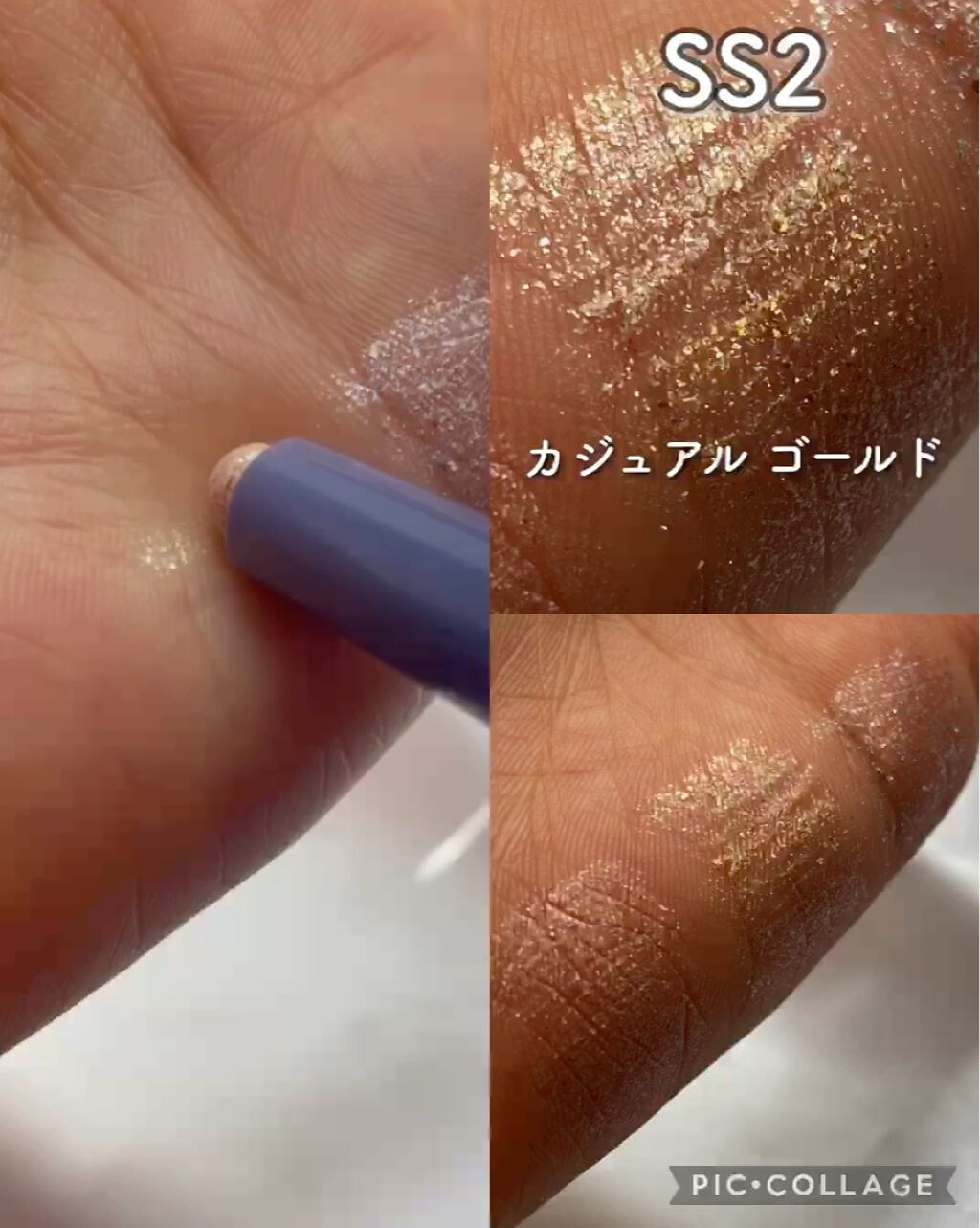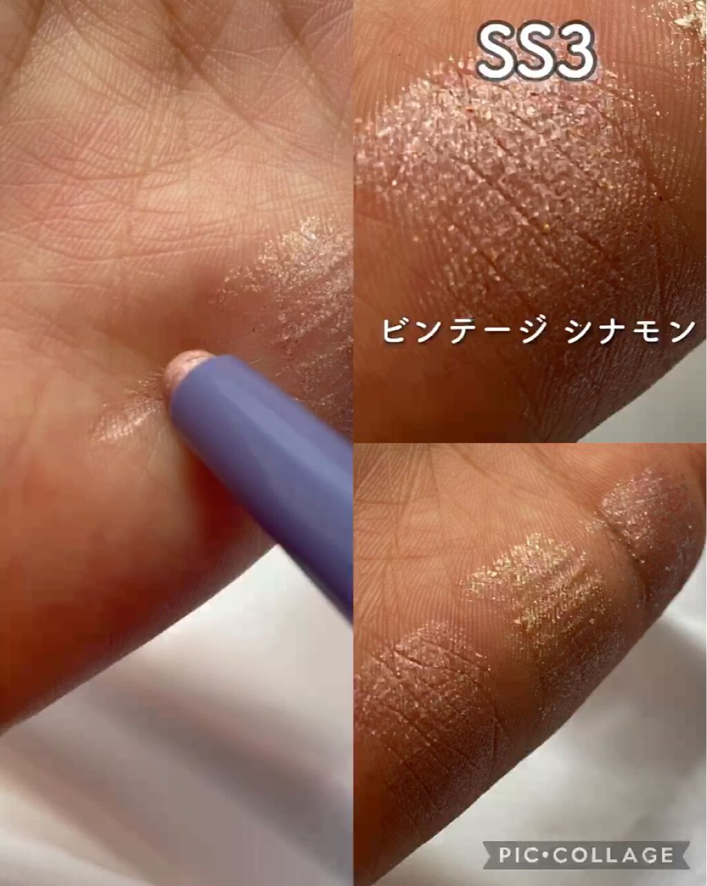 - SS1. オーバー クリスタル シクロペンタシロキサン, トリメチルシロキシケイ酸, ホウケイ酸(Ca/Al), メチルトリメチコン, 合成ワックス, 水添野菜油, シリカ, マイカ, パラフィン, ステアリン酸亜鉛, (エチレン/プロピレン)コポリマー, 合成フルオロフロゴパイト, 酸化チタン(CI77891), 銀, ジメチコン, 酸化鉄(CI77491), 酸化スズ SS2. カジュアル ゴールド シクロペンタシロキサン, トリメチルシロキシケイ酸, メチルトリメチコン, 合成ワックス, 水添野菜油, ホウケイ酸(Ca/Al), 合成フルオロフロゴパイト, ホウケイ酸(Ca/チタン), マイカ, シリカ, ホウケイ酸(Ca/Na), パラフィン, 酸化チタン(CI77891), ステアリン酸亜鉛, (エチレン/プロピレン)コポリマー, 酸化鉄(CI77491), ジメチコン, 酸化スズ, カルミン SS3. ビンテージ シナモン シクロペンタシロキサン, トリメチルシロキシケイ酸, メチルトリメチコン, 合成ワックス, ホウケイ酸(Ca/Al), マイカ, 水添野菜油, 合成フルオロフロゴパイト, シリカ, 酸化チタン(CI77891), パラフィン, ステアリン酸亜鉛, (エチレン/プロピレン)コポリマー, 酸化鉄(CI77491), ジメチコン, 酸化スズ