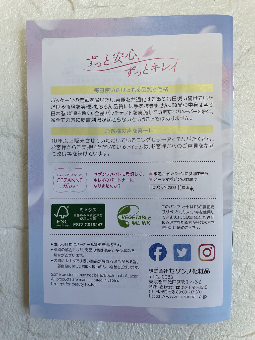 - <01 ピーチピンク> タルク、ジメチコン、メチルパラベン、プロピルパラベン、トコフェロール、(+/-)マイカ、硫酸Ba、メチコン、酸化チタン、酸化鉄、グンジョウ、赤226、赤202 <05 ベージュオレンジ> タルク、ジメチコン、ジフェニルジメチコン、トコフェロール、メチルパラベン、ブチルパラベン、マイカ、酸化チタン、ホウケイ酸(Ca/Al)、酸化鉄、シリカ、水酸化Al、赤226、メチコン、酸化スズ、硫酸Ba <10 オレンジピンク> タルク、ジメチコン、メチルパラベン、プロピルパラベン、トコフェロール、(+/-)マイカ、酸化チタン、酸化鉄、赤226、メチコン、グンジョウ、硫酸Ba、赤202 <18 ローズベージュ> タルク、エチルヘキサン酸セチル、ヘキサ(ヒドロキシステアリン酸/ステアリン酸/ロジン酸)ジペンタエリスリチル、リンゴ酸ジイソステアリル、メタクリル酸メチルクロスポリマー、トリメチルシロキシケイ酸、ヒドロキシアパタイト、メチルパラベン、プロピルパラベン、トコフェロール、(+/-)ジメチコン、ハイドロゲンジメチコン、トリエトキシカプリリルシラン、マイカ、シリカ、アルミナ、硫酸Ba、グンジョウ、赤226、酸化チタン、酸化亜鉛、酸化鉄 <04 ゴールドオレンジ> タルク、ジメチコン、ジフェニルジメチコン、トコフェロール、メチルパラベン、ブチルパラベン、マイカ、酸化鉄、酸化チタン、ホウケイ酸(Ca/Al)、赤226、シリカ、メチコン、水酸化Al、硫酸Ba、酸化スズ <13 ローズピンク> タルク、ジメチコン、ジフェニルジメチコン、トコフェロール、メチルパラベン、ブチルパラベン、マイカ、酸化チタン、ホウケイ酸(Ca/Al)、シリカ、酸化鉄、赤226、グンジョウ、水酸化Al、硫酸Ba、メチコン、酸化スズ <14 ラベンダーピンク> タルク、ジメチコン、ジフェニルジメチコン、トコフェロール、メチルパラベン、ブチルパラベン、マイカ、酸化チタン、グンジョウ、赤202、水酸化Al、酸化鉄、メチコン、硫酸Ba <17 ウォームブラウン> タルク、エチルヘキサン酸セチル、ヘキサ(ヒドロキシステアリン酸/ステアリン酸/ロジン酸)ジペンタエリスリチル、リンゴ酸ジイソステアリル、メタクリル酸メチルクロスポリマー、トリメチルシロキシケイ酸、ヒドロキシアパタイト、メチルパラベン、プロピルパラベン、トコフェロール、(+/-)ジメチコン、ハイドロゲンジメチコン、トリエトキシカプリリルシラン、マイカ、シリカ、アルミナ、硫酸Ba、グンジョウ、赤226、酸化チタン、酸化亜鉛、酸化鉄 <19 ペールベージュ> タルク、エチルヘキサン酸セチル、ヘキサ(ヒドロキシステアリン酸/ステアリン酸/ロジン酸)ジペンタエリスリチル、リンゴ酸ジイソステアリル、メタクリル酸メチルクロスポリマー、トリメチルシロキシケイ酸、ヒドロキシアパタイト、メチルパラベン、プロピルパラベン、トコフェロール、(+/-)ジメチコン、ハイドロゲンジメチコン、トリエトキシカプリリルシラン、マイカ、シリカ、アルミナ、硫酸Ba、グンジョウ、赤226、酸化チタン、酸化亜鉛、酸化スズ、酸化鉄 <20 ジンジャー> タルク、エチルヘキサン酸セチル、ヘキサ(ヒドロキシステアリン酸/ステアリン酸/ロジン酸)ジペンタエリスリチル、リンゴ酸ジイソステアリル、メタクリル酸メチルクロスポリマー、トリメチルシロキシケイ酸、ヒドロキシアパタイト、メチルパラベン、プロピルパラベン、トコフェロール、(+/-)ジメチコン、ハイドロゲンジメチコン、トリエトキシカプリリルシラン、マイカ、シリカ、アルミナ、硫酸Ba、グンジョウ、赤226、酸化チタン、酸化亜鉛、酸化スズ、酸化鉄