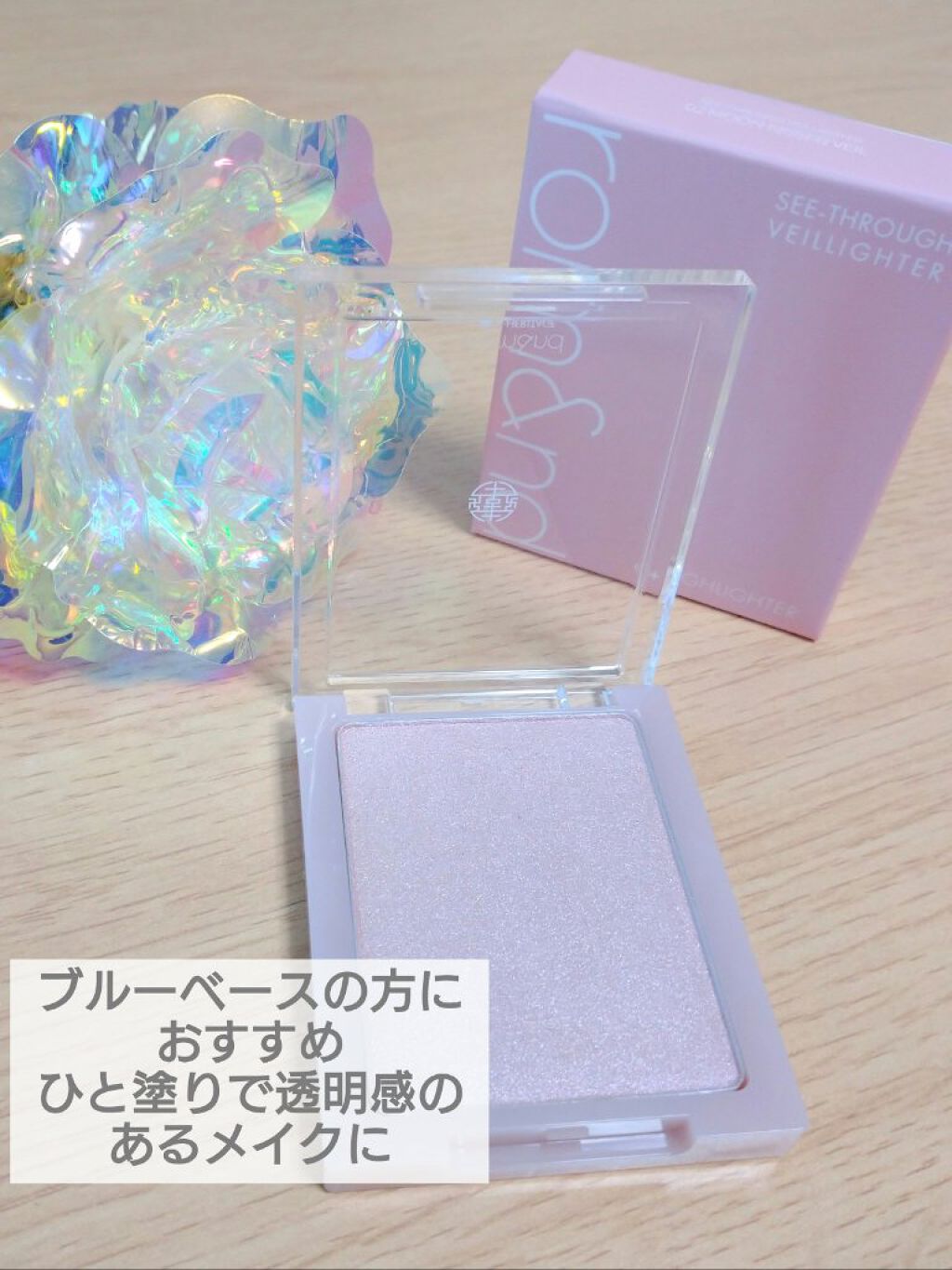 - ハンボクの綺麗な線で見つけたロムアンド最初のハイライター ロムアンド シースルー・ベールライター 2color #NOサイバーチック#ナチュラル・キラキラ 日差しが顔を撫でる瞬間を入れた#自然な艶感 密着力の良い潤いクリーム・タイプで自然に優雅なメイクを 1サイバーチックではないかすかに輝く#ナチュラル艶 2重ねても厚く見えにくい#ベール艶 3さらりと頬に染める#滑らか艶