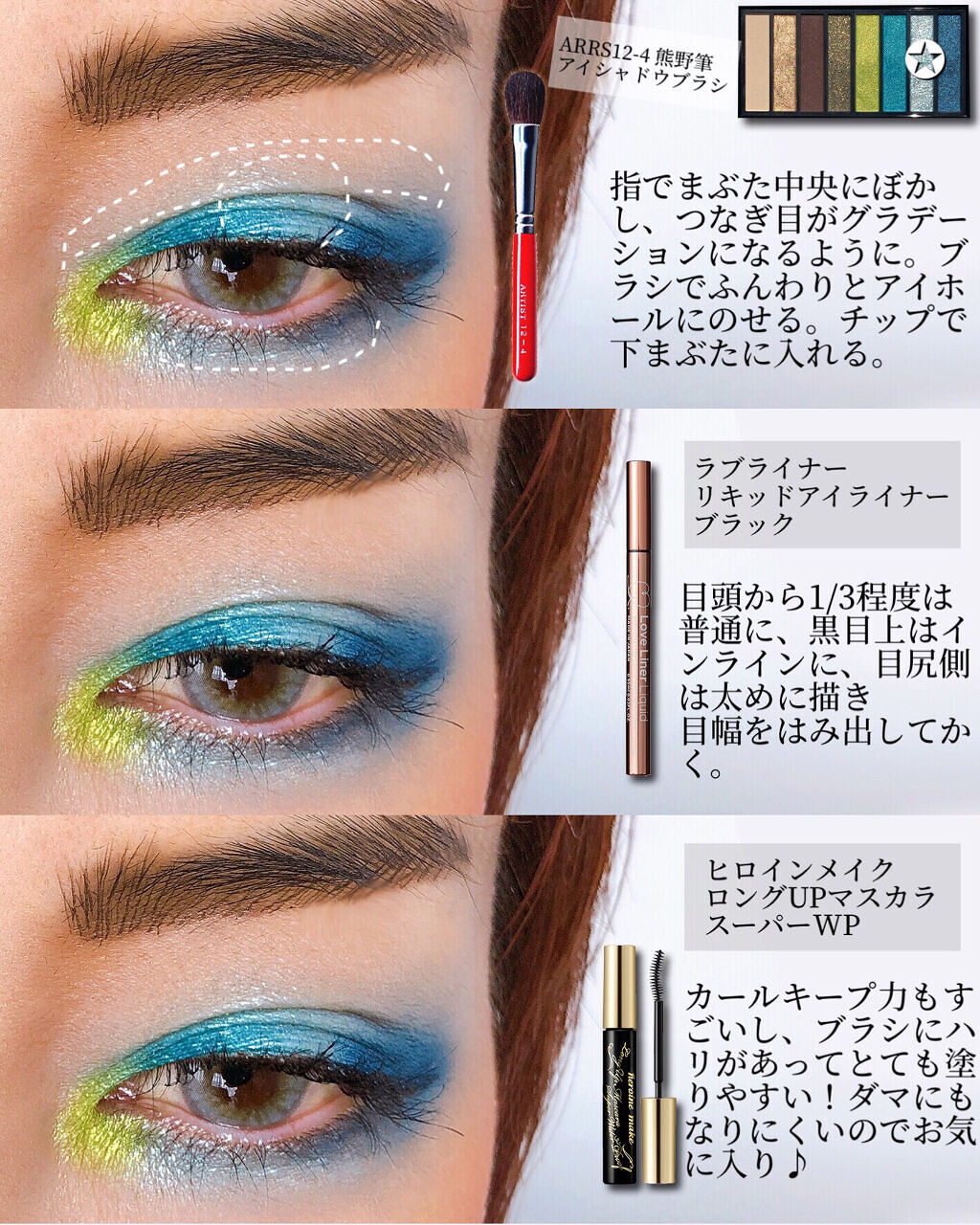 すっごい綺麗なブルー🤤❤❤❤ こういうカラー大好き❣️ さるサンのメイク見てると楽しくなります🧡