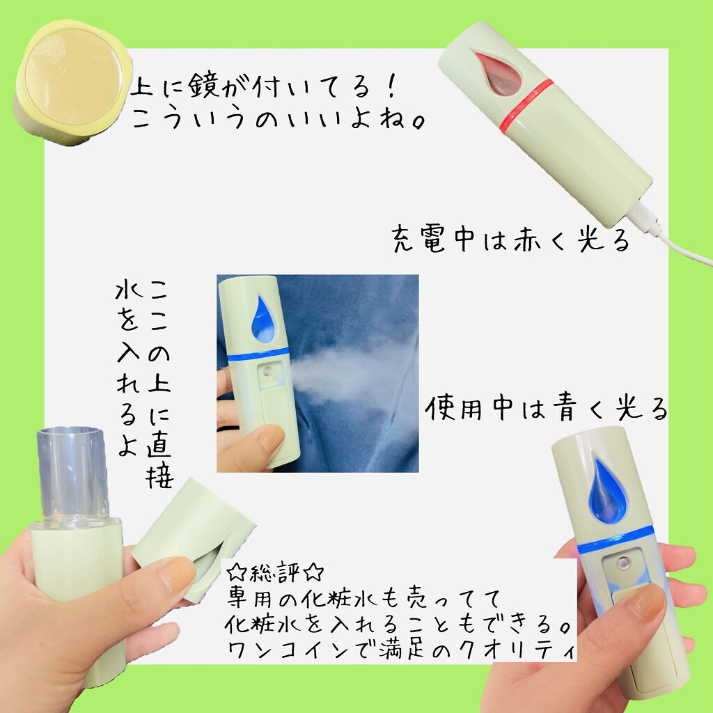 写真のとは違うけど…似てるのは 3COINS ハンディフェイススチーマー ¥550この超音波ミストを振りかけた後、SPF50PA+++以上のUVプレストパウダーをキャンメイク マシュマロフィニッシュパウダーブラシ くすみピンクベージュ 限定 ...