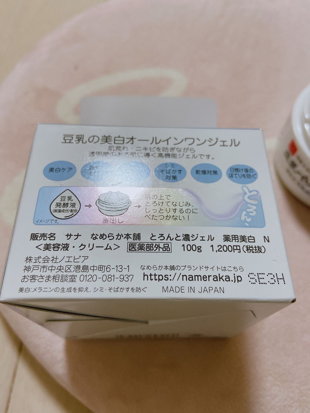 忙しい日々の味方 【なめらか本舗 とろんと濃ジェル 薬用美白 N】 やはりオールインワン化粧品の魅力は、この1つでスキンケアが完了することですよね。『化粧水・乳液・クリーム・パック効果・美容液・化粧下地』の効果が期待できます。 乾燥も防ぐことができていますし、ジェルなのでみずみずしくサラッとしています。ベタつきが苦手な方におすすめです。