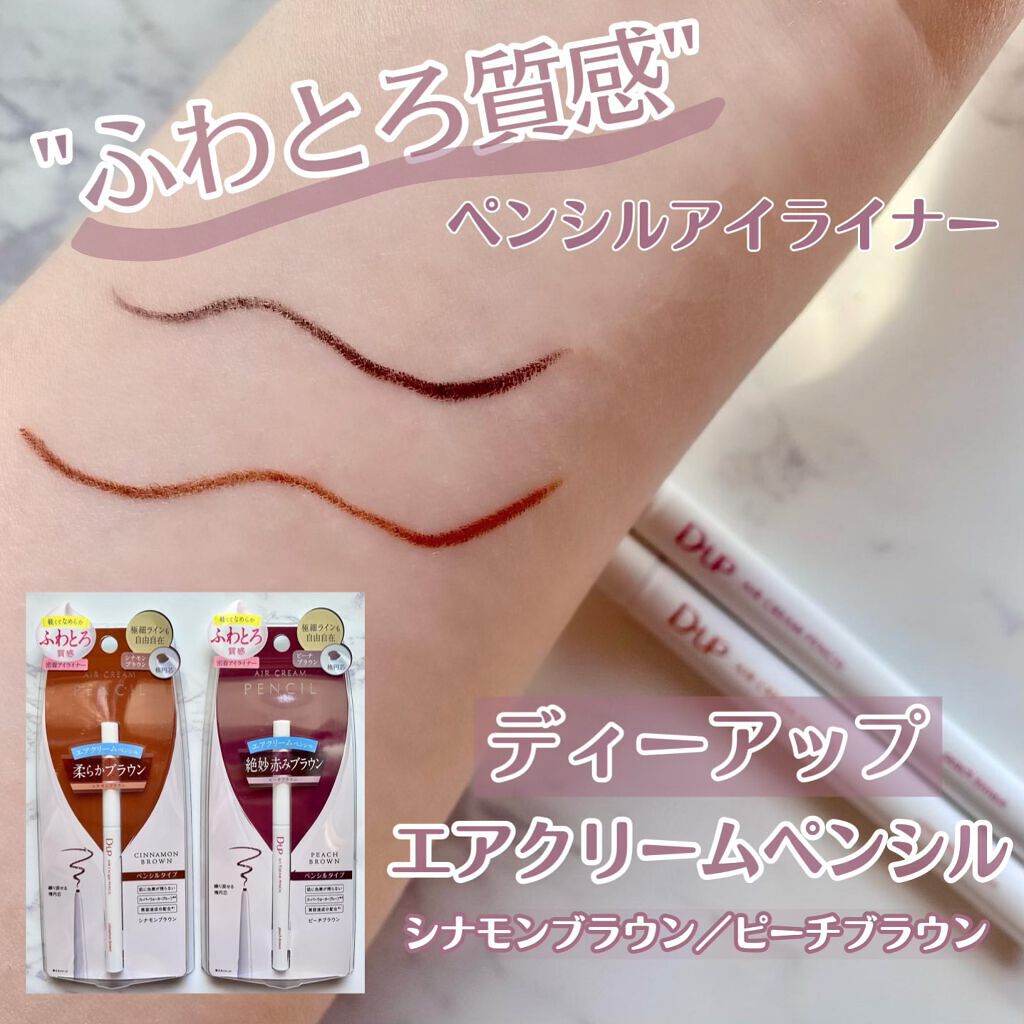 - ※2024年9月〜パッケージ順次リニューアル。尚、これにかかる商品の返品・交換は承っておりません。 「軽くてエアリー、なめらかクリーミィ」 ホイップを固めたような“ふわとろ”質感の新アイライナー ▶摩擦を抑えた描き心地!触れるだけで“スーッ”とほどける「空気感タッチ」 なめらかな描き心地で、まつ毛の隙間や肌の凹凸に引っかからずに狙い通りにラインが描ける。 ▶新形状の極細楕円芯!「キワ埋め」も「目尻」も自在 狙った場所に自在に描ける「1.3㎜×2.5㎜」の新形状。極細ラインもテクニックレス。 ▶ピタッと高密着!高い耐久性。水汗皮脂に強いスーパーウォータープルーフ* まぶたにピタッと密着して、マスクでもよれにくい。 *ディーアップ アイライナーにおいて ・シナモンブラウン “肌になじむ、柔らか 抜け感くすみブラウン” 抜け感と締め感を両立し、ナチュラルに盛れる ・ピーチブラウン “ビターなほんのり赤み系ブラウン” まるでまつ毛の密度が上がったように、自然に目元を大きく見せる ・ソイラテブラウン (2022年10月9日発売) 肌にふわっと溶け込む、まろやかな“ラテカラー” 軽やかなのに深みのある色味で自然と瞳を強調