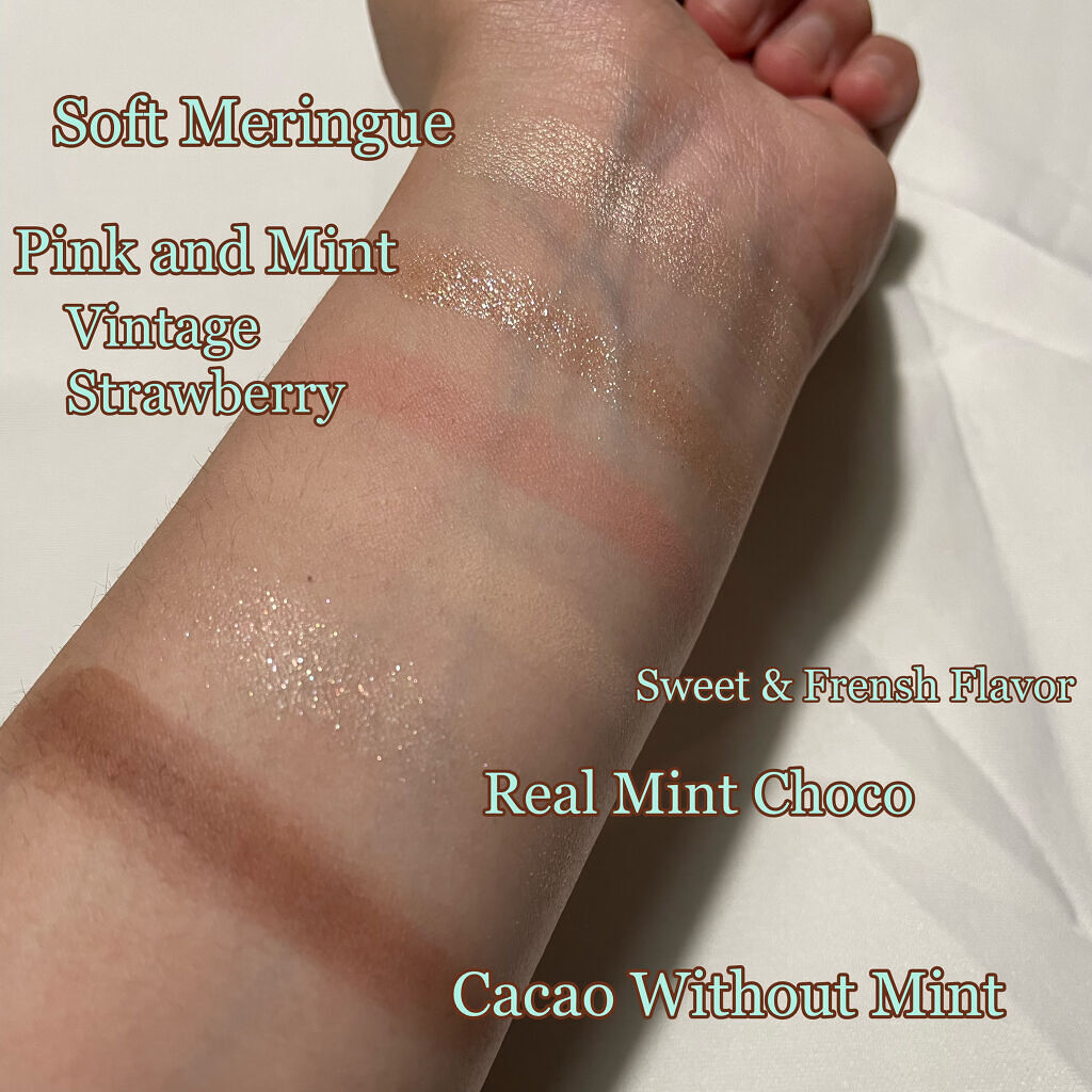 - チャーミングに仕上げるスペシャルキット チョコミントのように甘く爽やかな色合いのアイシャドウパレットとキュートなブラシがキットに。思わずクセになっちゃう絶妙なハーモニーでまぶたをチャーミングに色づけて。可愛らしさを印象づけるピンクコーラルからカカオのようにほろ苦いブラウンまで、捨て色なしの6色であなたもチョコミントの虜に…!