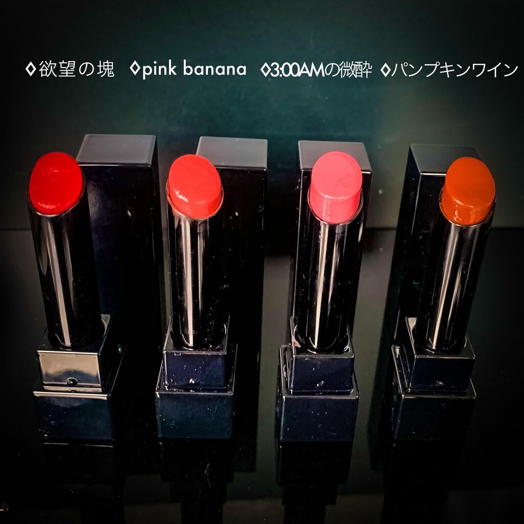 - <01 欲望の塊> テトライソステアリン酸ジペンタエリスリチル、トリ(カプリル酸/カプリン酸)グリセリル、オクチルドデカノール、ラウロイルグルタミン酸ジ(フィトステリル/オクチルドデシル)、ビスアルキル(C16-18)グリセリルウンデシルジメチコン、イソノナン酸イソトリデシル、水添ポリイソブテン、ラウロイルグルタミン酸ジ(オクチルドデシル/フィトステリル/ベヘニル)、パラフィン、合成ワックス、ダイマージリノール酸(フィトステリル/イソステアリル/セチル/ステアリル/ベヘニル)、マイクロクリスタリンワックス、水添マイクロクリスタリンワックス、ヒドロキシステアリン酸エチルヘキシル、トコフェロール、ホホバ種子油、オリーブ果実油、アーモンド油、(エチレン/プロピレン)コポリマー、ポリエチレン、ジメチコン、(+/-)(チタン/酸化チタン)焼結物、マイカ、ラウロイルアスパラギン酸Na、ラウロイルリシン、塩化亜鉛、酸化チタン、酸化鉄、水酸化Al、硫酸Ba、トリイソステアリン酸イソプロピルチタン、酸化スズ、ホウケイ酸(Ca/Al)、合成フルオロフロゴパイト、黄4、黄5、赤104(1)、赤201、赤202 <02 ピンクバナナ> テトライソステアリン酸ジペンタエリスリチル、トリ(カプリル酸/カプリン酸)グリセリル、オクチルドデカノール、ラウロイルグルタミン酸ジ(フィトステリル/オクチルドデシル)、ビスアルキル(C16-18)グリセリルウンデシルジメチコン、イソノナン酸イソトリデシル、水添ポリイソブテン、ラウロイルグルタミン酸ジ(オクチルドデシル/フィトステリル/ベヘニル)、パラフィン、合成ワックス、ダイマージリノール酸(フィトステリル/イソステアリル/セチル/ステアリル/ベヘニル)、マイクロクリスタリンワックス、水添マイクロクリスタリンワックス、ヒドロキシステアリン酸エチルヘキシル、トコフェロール、ホホバ種子油、オリーブ果実油、アーモンド油、(エチレン/プロピレン)コポリマー、ポリエチレン、ジメチコン、(+/-)(チタン/酸化チタン)焼結物、マイカ、ラウロイルアスパラギン酸Na、ラウロイルリシン、塩化亜鉛、酸化チタン、酸化鉄、水酸化Al、硫酸Ba、トリイソステアリン酸イソプロピルチタン、酸化スズ、ホウケイ酸(Ca/Al)、合成フルオロフロゴパイト、黄4、黄5、赤104(1)、赤201、赤202 <03 陽炎> テトライソステアリン酸ジペンタエリスリチル、トリ(カプリル酸/カプリン酸)グリセリル、オクチルドデカノール、ラウロイルグルタミン酸ジ(フィトステリル/オクチルドデシル)、ビスアルキル(C16-18)グリセリルウンデシルジメチコン、イソノナン酸イソトリデシル、水添ポリイソブテン、ラウロイルグルタミン酸ジ(オクチルドデシル/フィトステリル/ベヘニル)、パラフィン、合成ワックス、ダイマージリノール酸(フィトステリル/イソステアリル/セチル/ステアリル/ベヘニル)、マイクロクリスタリンワックス、水添マイクロクリスタリンワックス、ヒドロキシステアリン酸エチルヘキシル、トコフェロール、ホホバ種子油、オリーブ果実油、アーモンド油、(エチレン/プロピレン)コポリマー、ポリエチレン、ジメチコン、(+/-)(チタン/酸化チタン)焼結物、マイカ、ラウロイルアスパラギン酸Na、ラウロイルリシン、塩化亜鉛、酸化チタン、酸化鉄、水酸化Al、硫酸Ba、トリイソステアリン酸イソプロピルチタン、酸化スズ、ホウケイ酸(Ca/Al)、合成フルオロフロゴパイト、黄4、黄5、赤104(1)、赤201、赤202 <04 パンプキンワイン> テトライソステアリン酸ジペンタエリスリチル、トリ(カプリル酸/カプリン酸)グリセリル、オクチルドデカノール、ラウロイルグルタミン酸ジ(フィトステリル/オクチルドデシル)、ビスアルキル(C16-18)グリセリルウンデシルジメチコン、イソノナン酸イソトリデシル、水添ポリイソブテン、ラウロイルグルタミン酸ジ(オクチルドデシル/フィトステリル/ベヘニル)、パラフィン、合成ワックス、ダイマージリノール酸(フィトステリル/イソステアリル/セチル/ステアリル/ベヘニル)、マイクロクリスタリンワックス、水添マイクロクリスタリンワックス、ヒドロキシステアリン酸エチルヘキシル、トコフェロール、ホホバ種子油、オリーブ果実油、アーモンド油、(エチレン/プロピレン)コポリマー、ポリエチレン、ジメチコン、(+/-)(チタン/酸化チタン)焼結物、マイカ、ラウロイルアスパラギン酸Na、ラウロイルリシン、塩化亜鉛、酸化チタン、酸化鉄、水酸化Al、硫酸Ba、トリイソステアリン酸イソプロピルチタン、酸化スズ、ホウケイ酸(Ca/Al)、合成フルオロフロゴパイト、黄4、黄5、赤104(1)、赤201、赤202 <05 ダークフィグ> テトライソステアリン酸ジペンタエリスリチル、トリ(カプリル酸/カプリン酸)グリセリル、オクチルドデカノール、ラウロイルグルタミン酸ジ(フィトステリル/オクチルドデシル)、ビスアルキル(C16-18)グリセリルウンデシルジメチコン、イソノナン酸イソトリデシル、水添ポリイソブテン、ラウロイルグルタミン酸ジ(オクチルドデシル/フィトステリル/ベヘニル)、