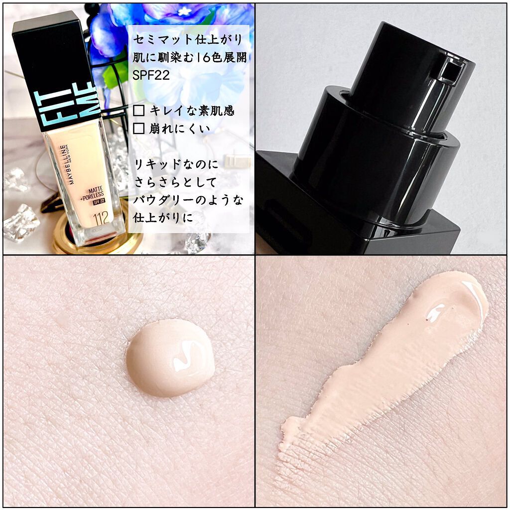 - 肌に溶け込むようになじんで、まるで素肌のような仕上がりのリキッドファンデーション。豊富なカラーバリエーションで妥協なく自分にぴったりの色が見つかります。エアロジェル*1を配合。油分を吸収してしっかり密着、崩れにくいのにうるおい感は残すので長時間心地よい*3。パウダーいらずで、夜までテカらないさらさら仕上がりが続きます。SPF22配合で夏の日差しにも。しっかりUVケアできます。 さらに肌に優しい! -ニキビができにくい処方(ノンコメドジェニックテスト済)*3 -皮膚科医協力のもとテスト済*4 -アレルギーテスト済*4 *1シリル化シリカ(油分吸収成分) *2 メイベリン ニューヨーク調べ。個人差があります。 *3すべての方にコメド(ニキビのもと)が発生しないというわけではありません。 *4すべての方に肌トラブルがおこらないというわけではありません。